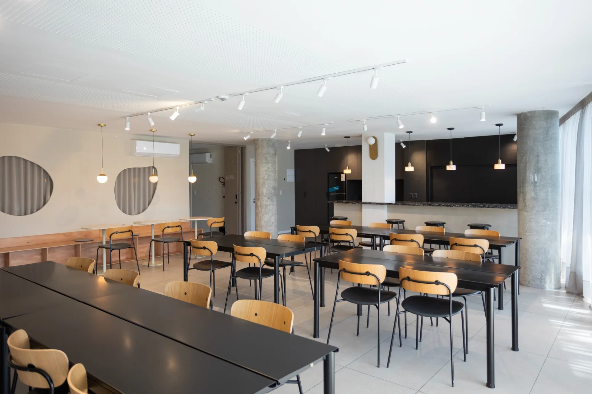El edificio ofrece amenities como barbacoas, cowork, gym y areas verdes. Entre sus comodidades se encuentra ascensor y circuito de cámaras de seguridad. Los gastos comunes mensuales se encuentran en el rango de $4.000 a $4.500.