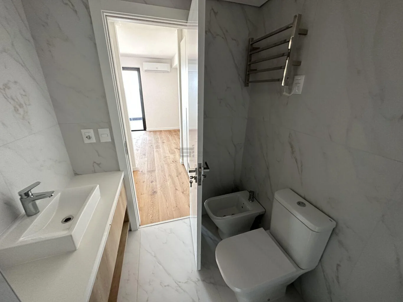 Se entrega totalmente equipado con aires acondicionados en todos los ambientes, calefacción eléctrica individual Calor Slim, cortinas, artefactos de iluminación, espejos en baños y mampara en ducha principal. Incluye garaje cómodo.