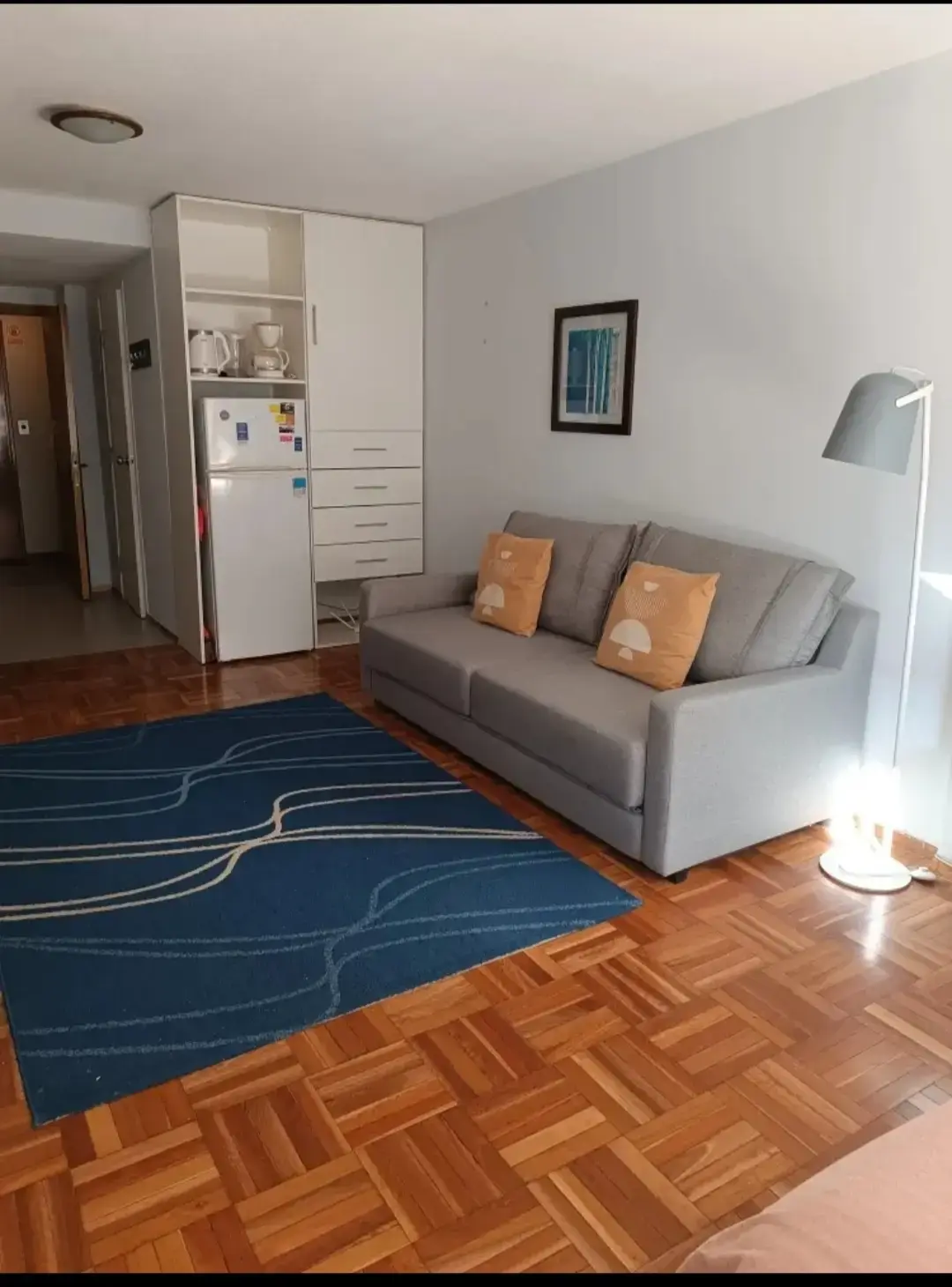 Cuenta con cocina equipada con heladera, horno y anafe, microondas y barra desayunadora.