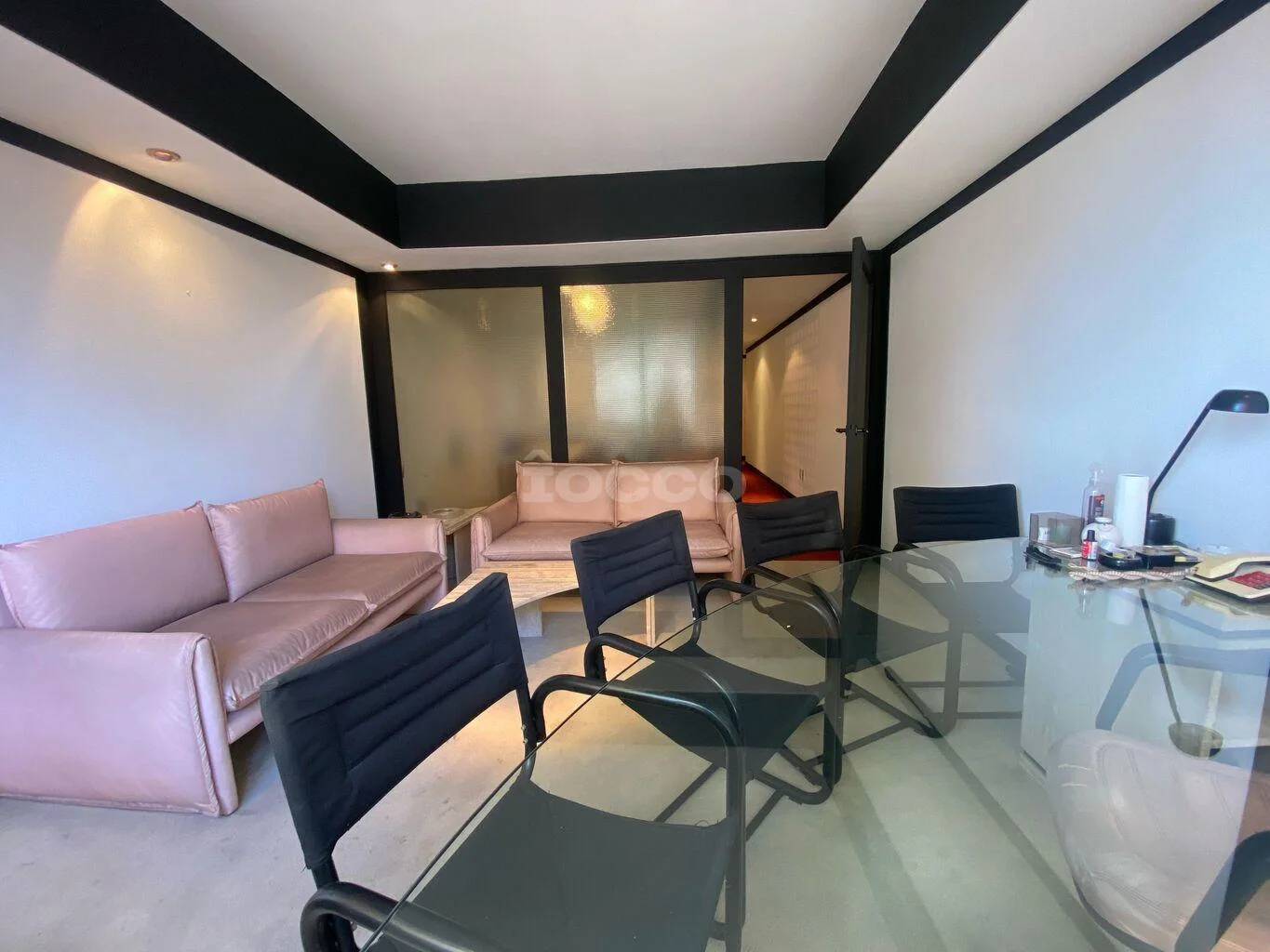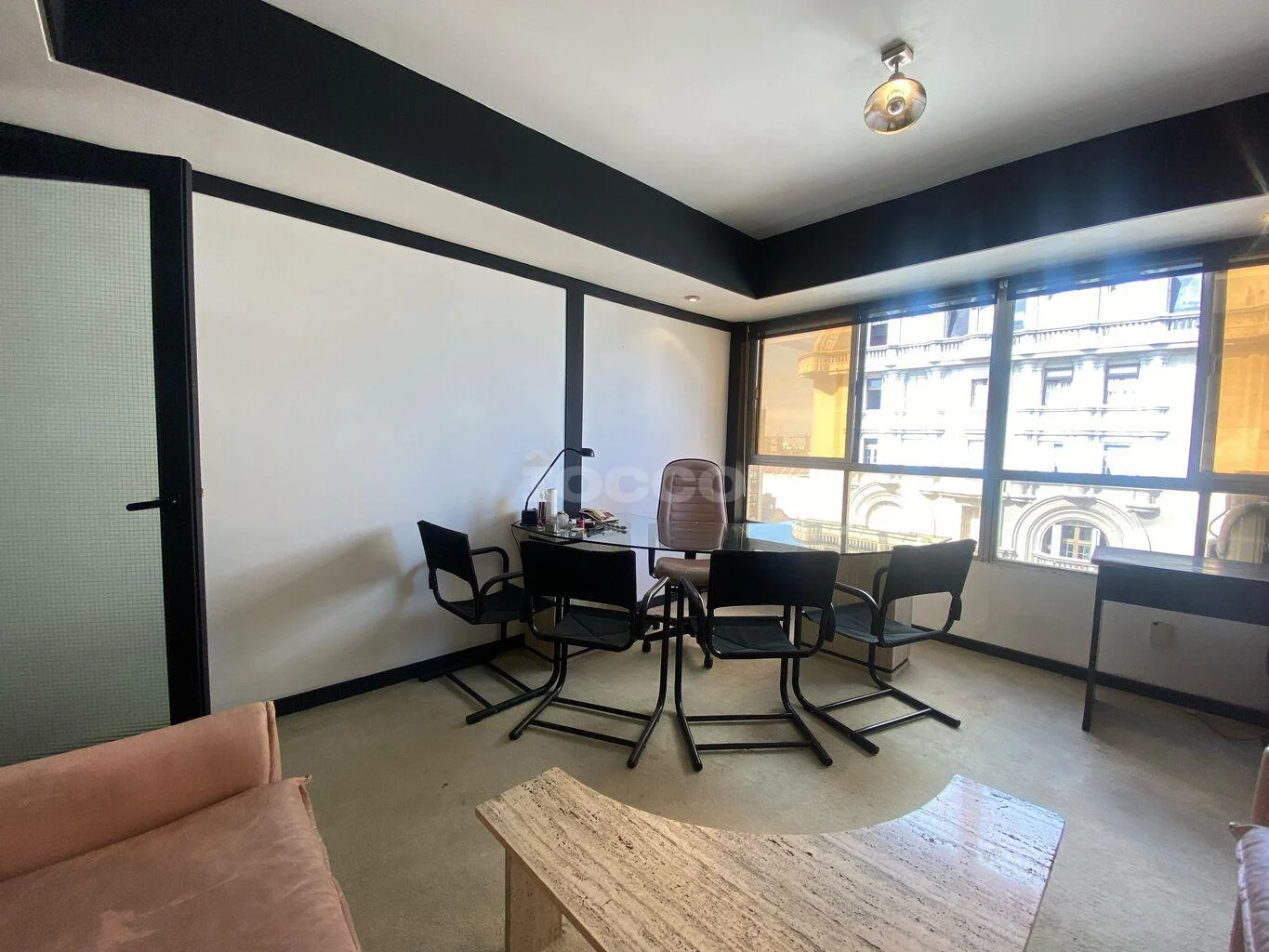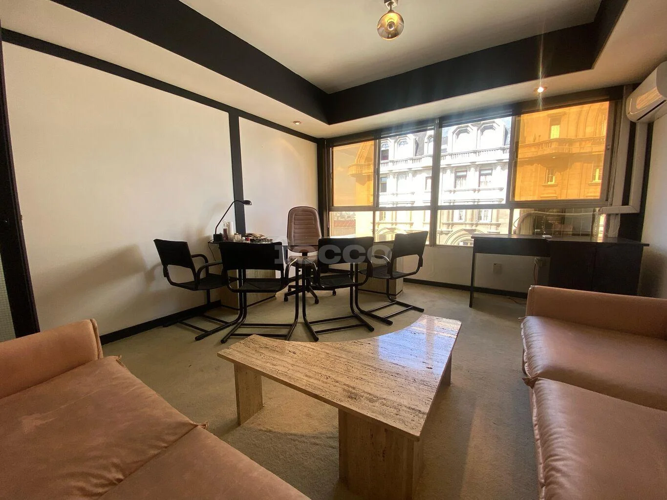 Al fondo mediante divisoria liviana nos encontramos con el desapcho principal, orientado al frente, dispone de abundante luz natural y con vista al Palacio Salvo.