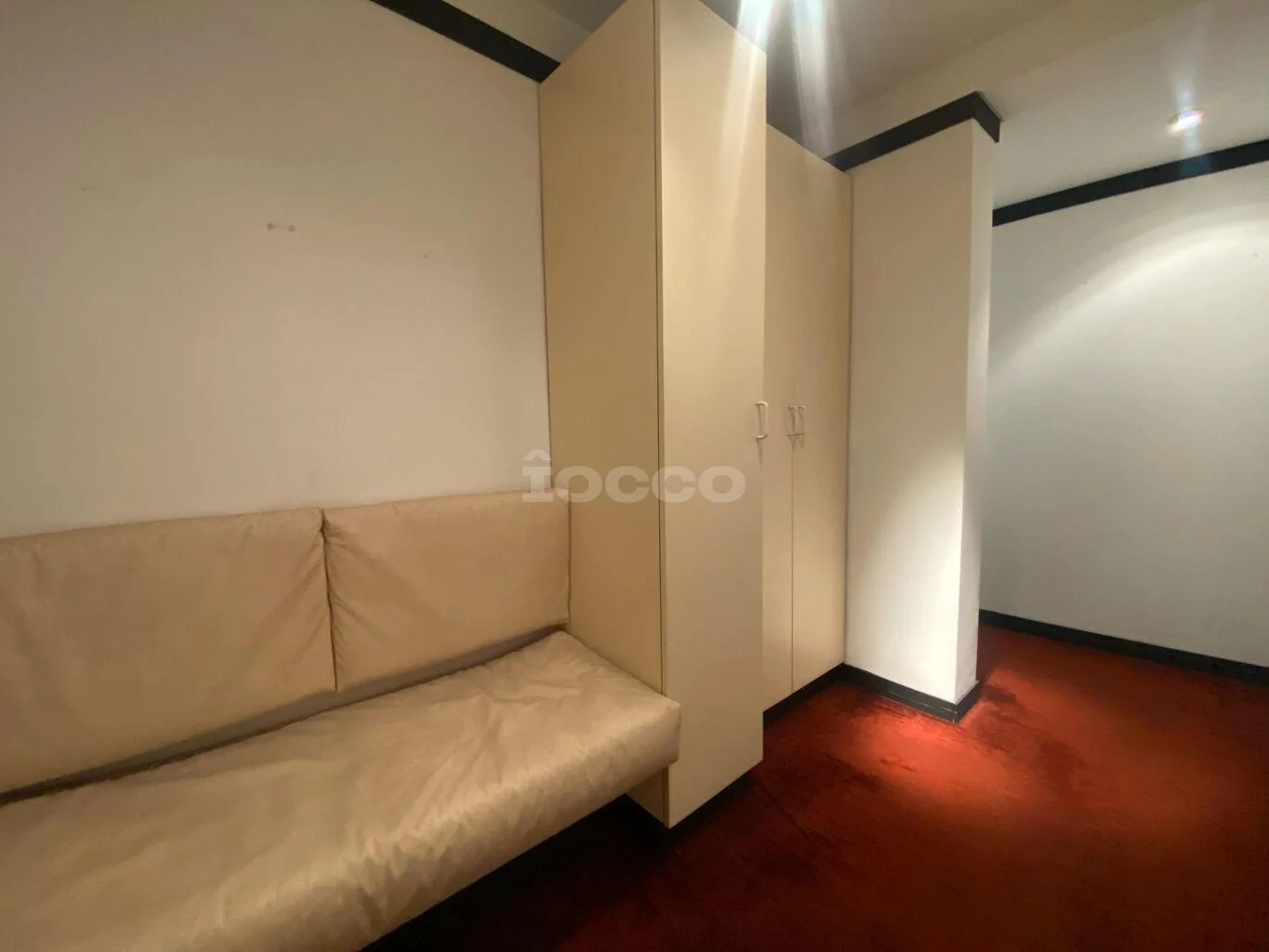 Al ingreso, pequeño espacio de recepción equipado con sillón y muebles empotrados.