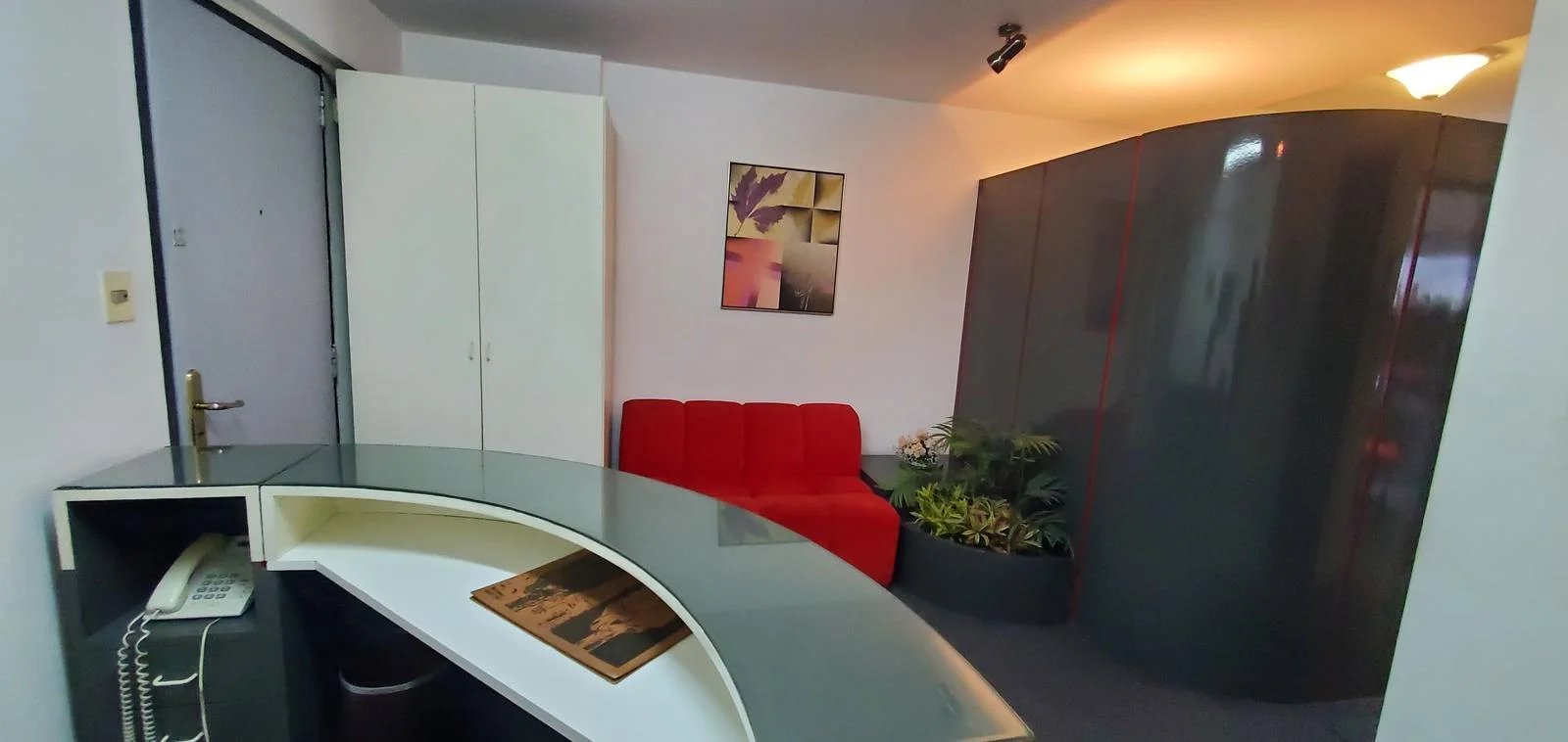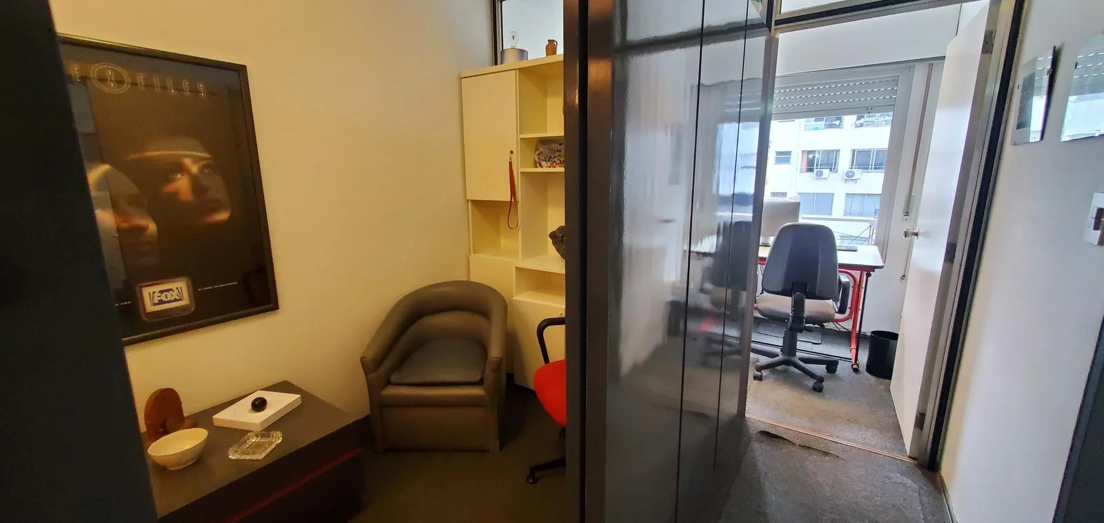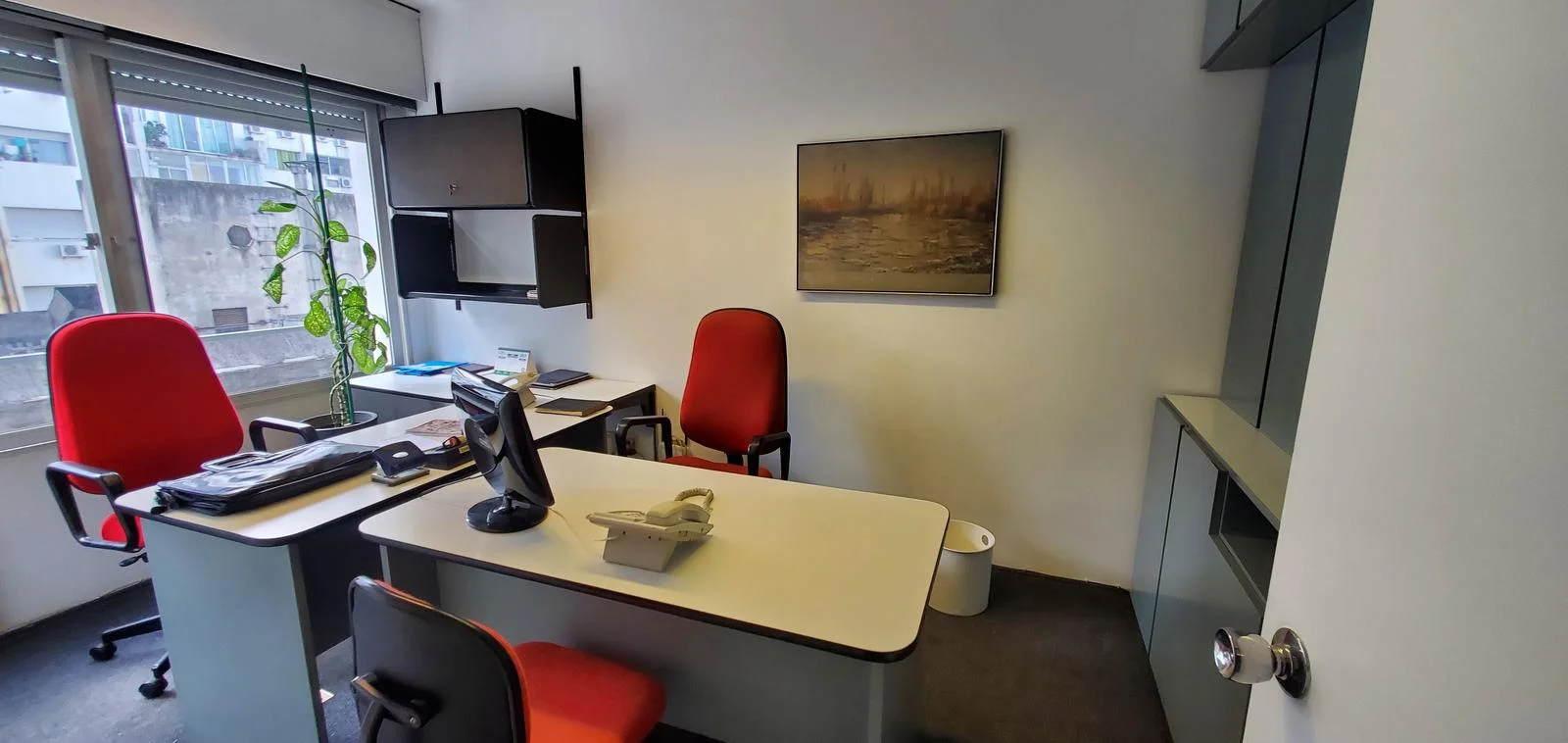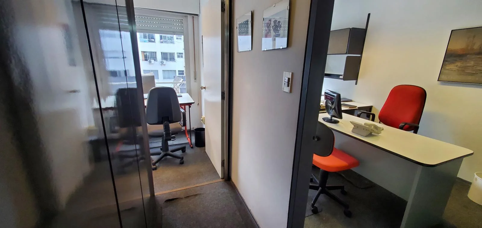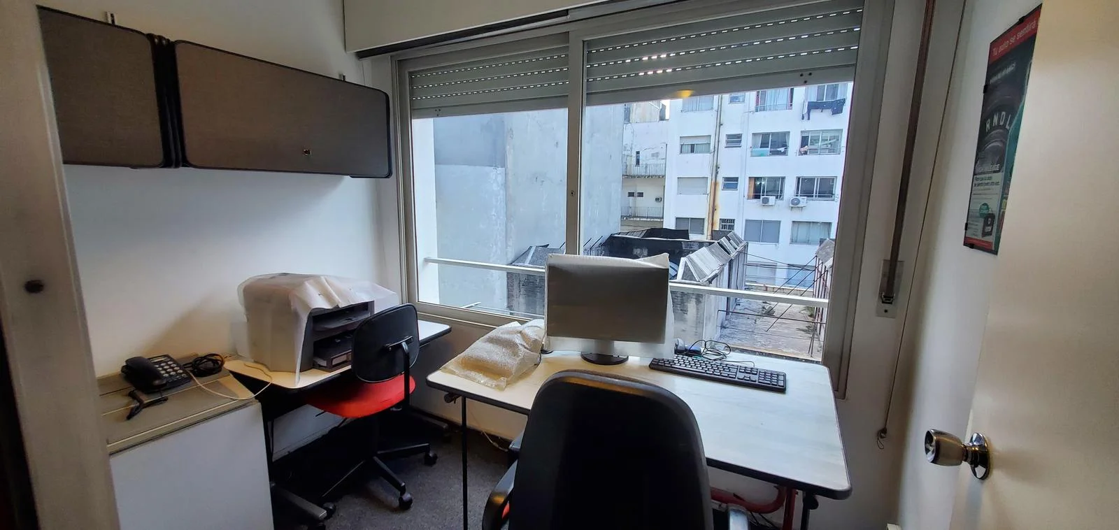 La unidad se encuentra amoblada con placares empotrados, tiene disponible todo para una oficina funcional. Tiene un cubiculo como sala de espera o reunión.