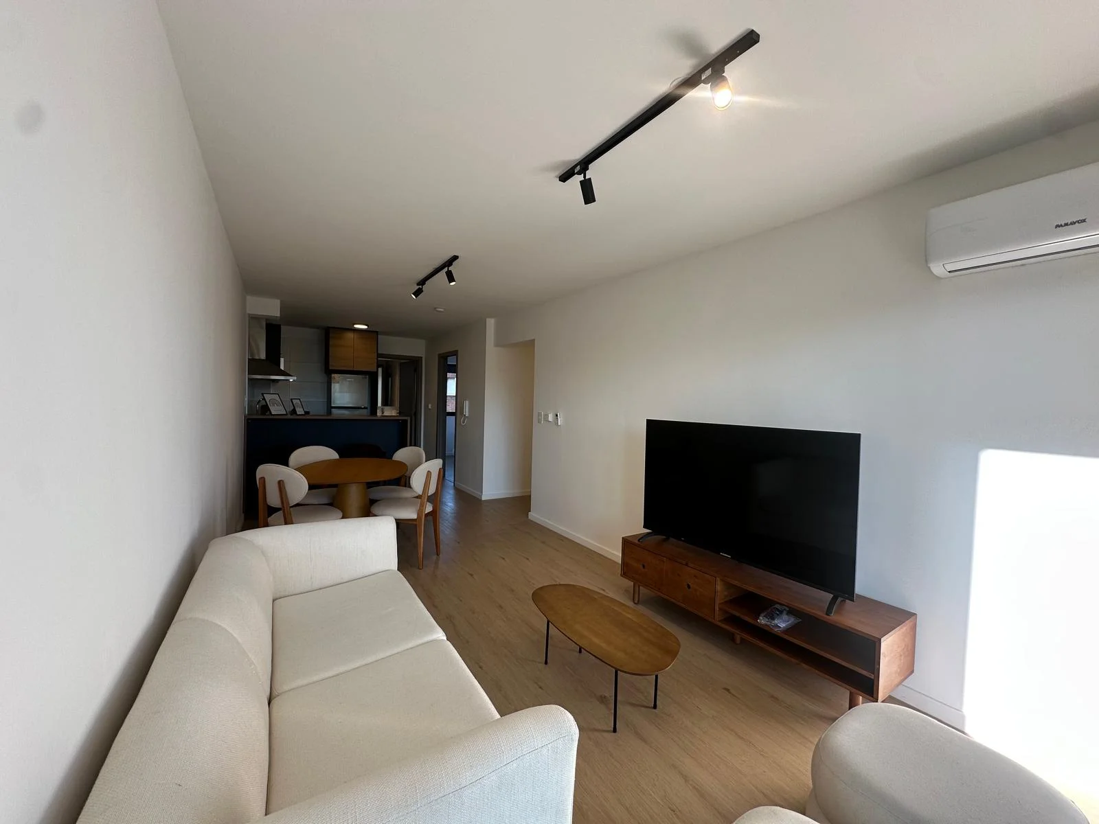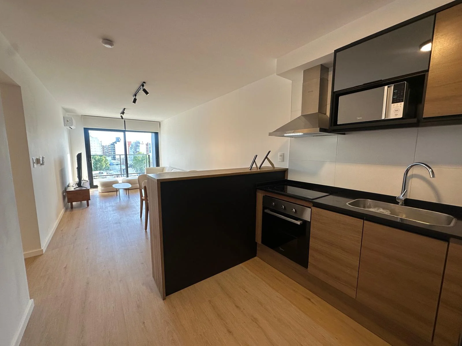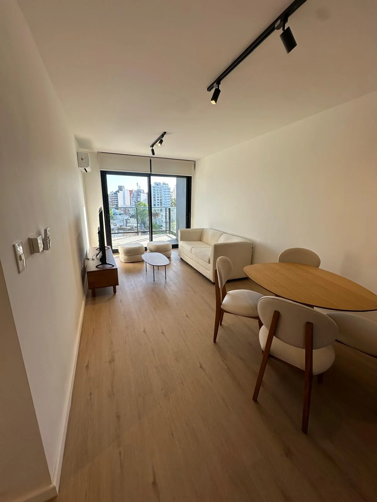 El Apartamento cuenta con un living comedor con cocina integrada y desayunador que integran el área de recibidor y estar; posee ventanales panorámicos con una hermosa vista despejada que alcanza el Río de la Plata, el piso es alto por tanto la ventilación también es abundante y constante, tiene también salida a amplio balcón para disfrutar las vistas, el aire fresco y la calidez de los días soleados. La unidad cuenta con loza radiante ajustable en cada unidad y por áreas del apartamento