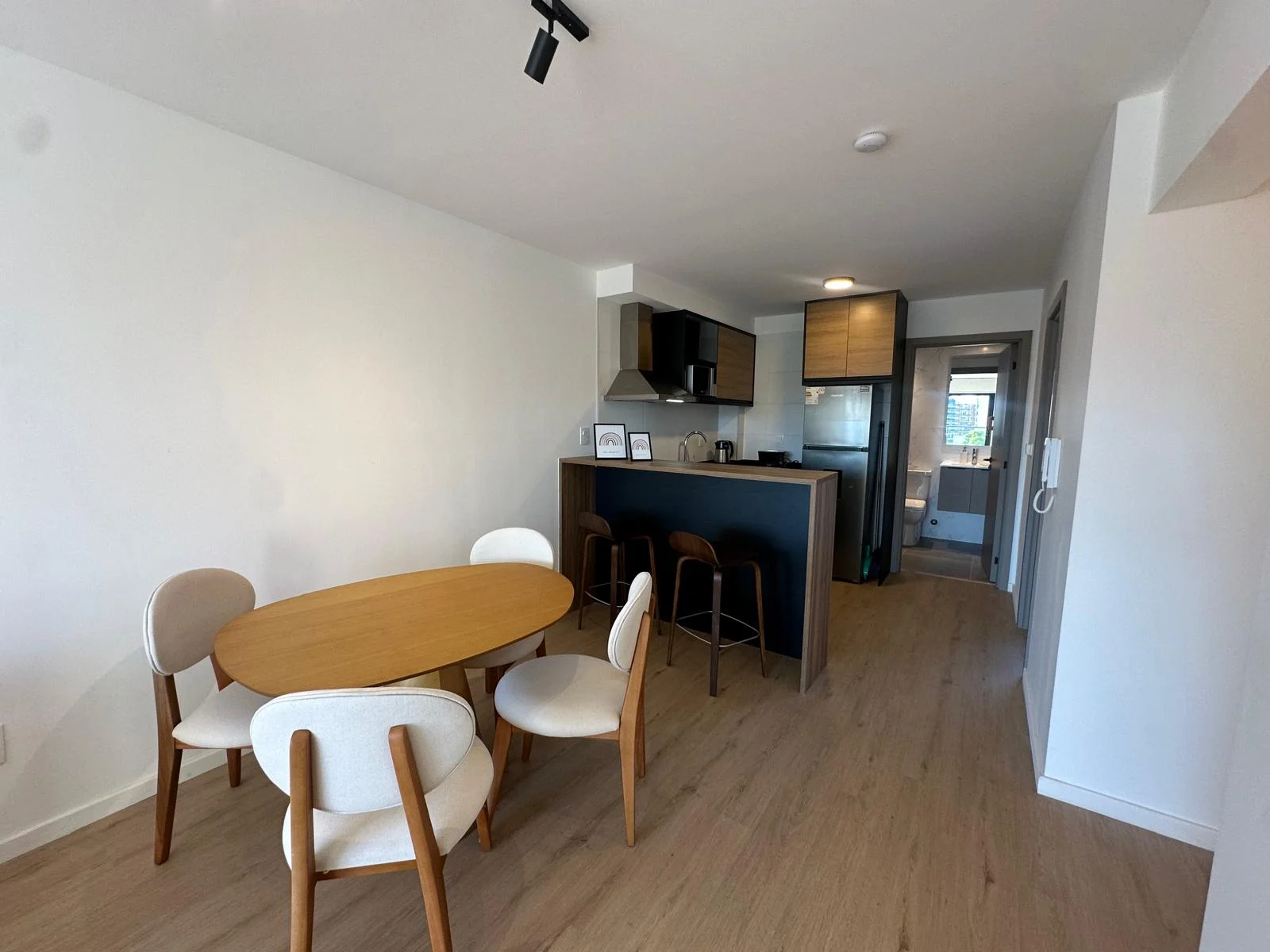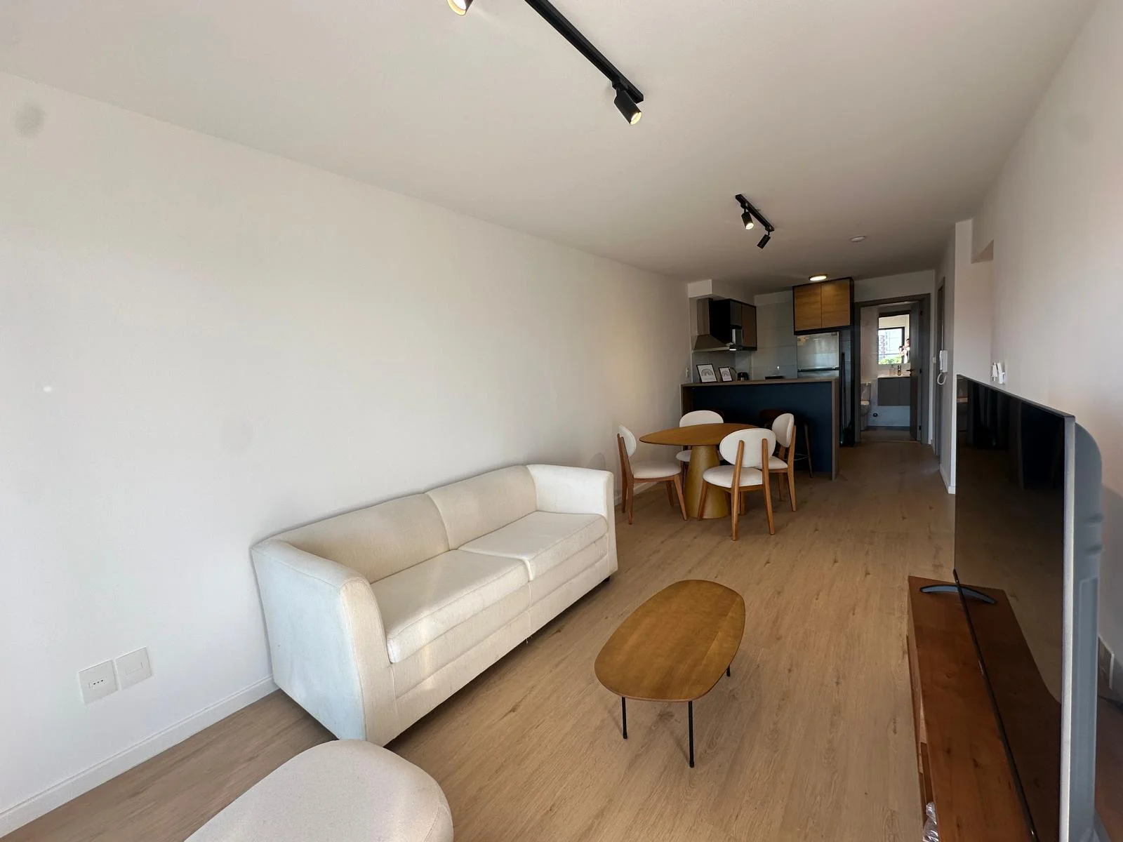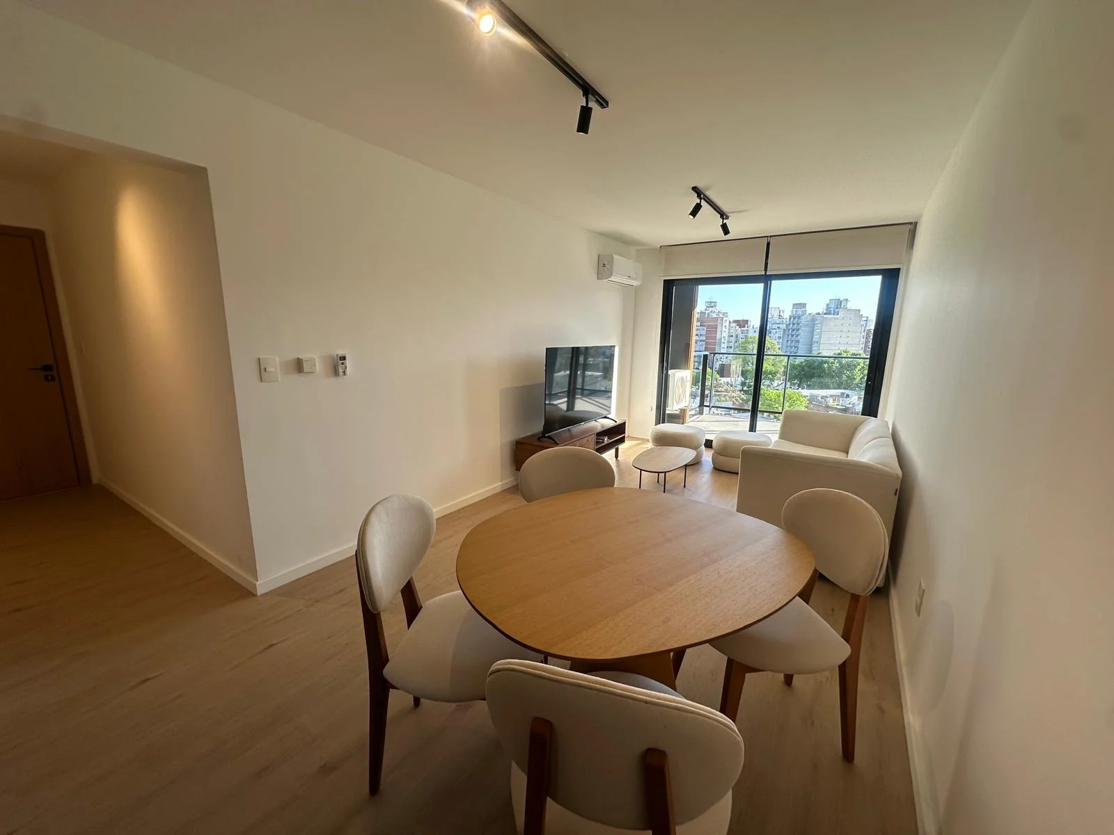 El Apartamento cuenta con un living comedor con cocina integrada y desayunador que integran el área de recibidor y estar; posee ventanales panorámicos con una hermosa vista despejada que alcanza el Río de la Plata, el piso es alto por tanto la ventilación también es abundante y constante, tiene también salida a amplio balcón para disfrutar las vistas, el aire fresco y la calidez de los días soleados. La unidad cuenta con loza radiante ajustable en cada unidad y por áreas del apartamento