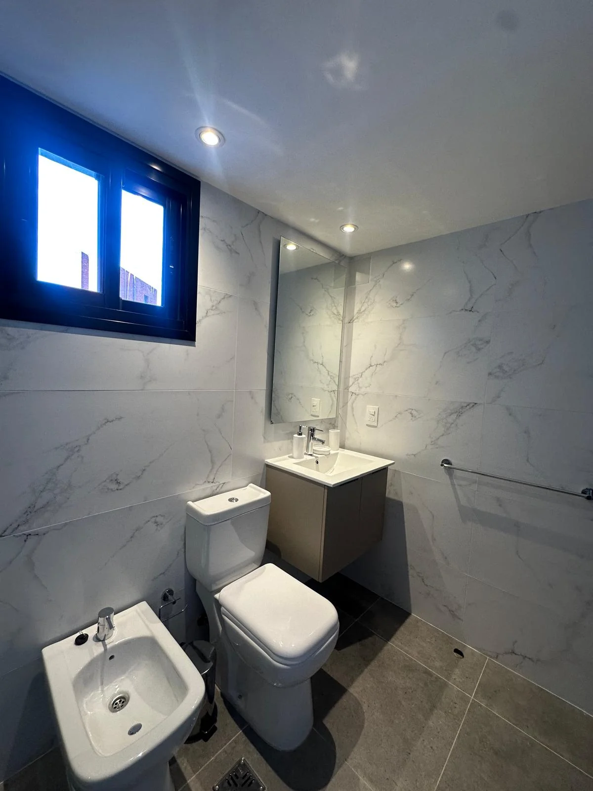 El baño de muy buen tamaño todo hecho a nuevo con mampara de vidrio y piezas de alta calidad; también viene con lavarropas chico para cosas pequeñas o lavado diario; en el edificio hay laundry como amenities para uso de sus residentes, así como también barbacoa equipada para tus reuniones y eventos.