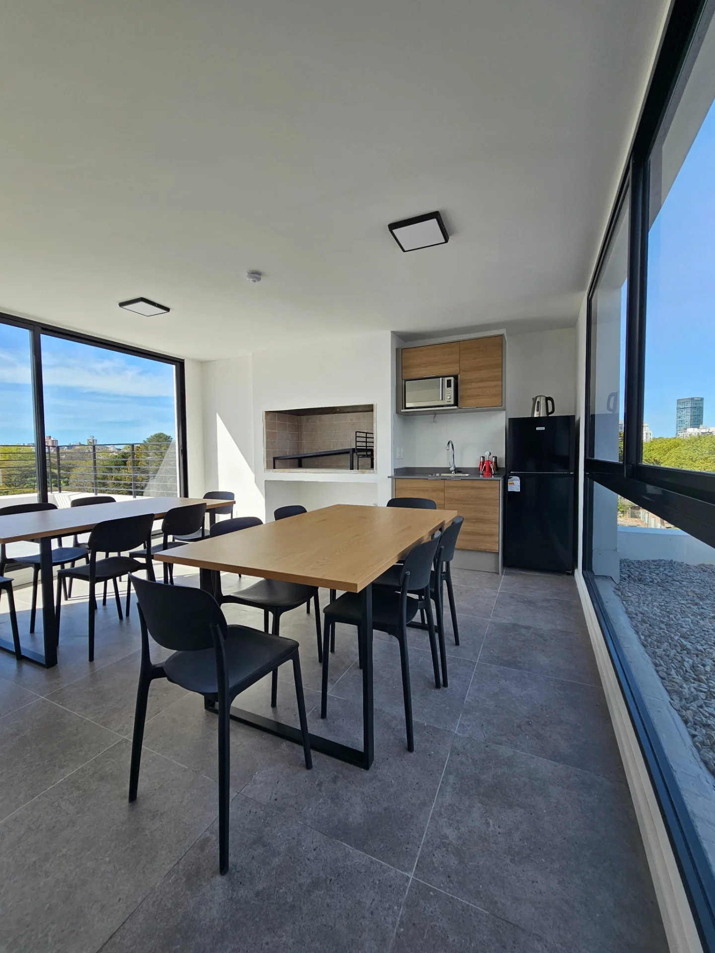 El edificio ofrece excelentes amenities: barbacoa, solárium, gimnasio y laundry, pensados para brindar mayor comodidad y calidad de vida.
