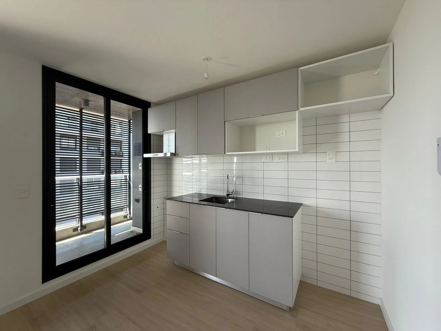 - Cocina integrada con mueble bajo y sobre mesada.