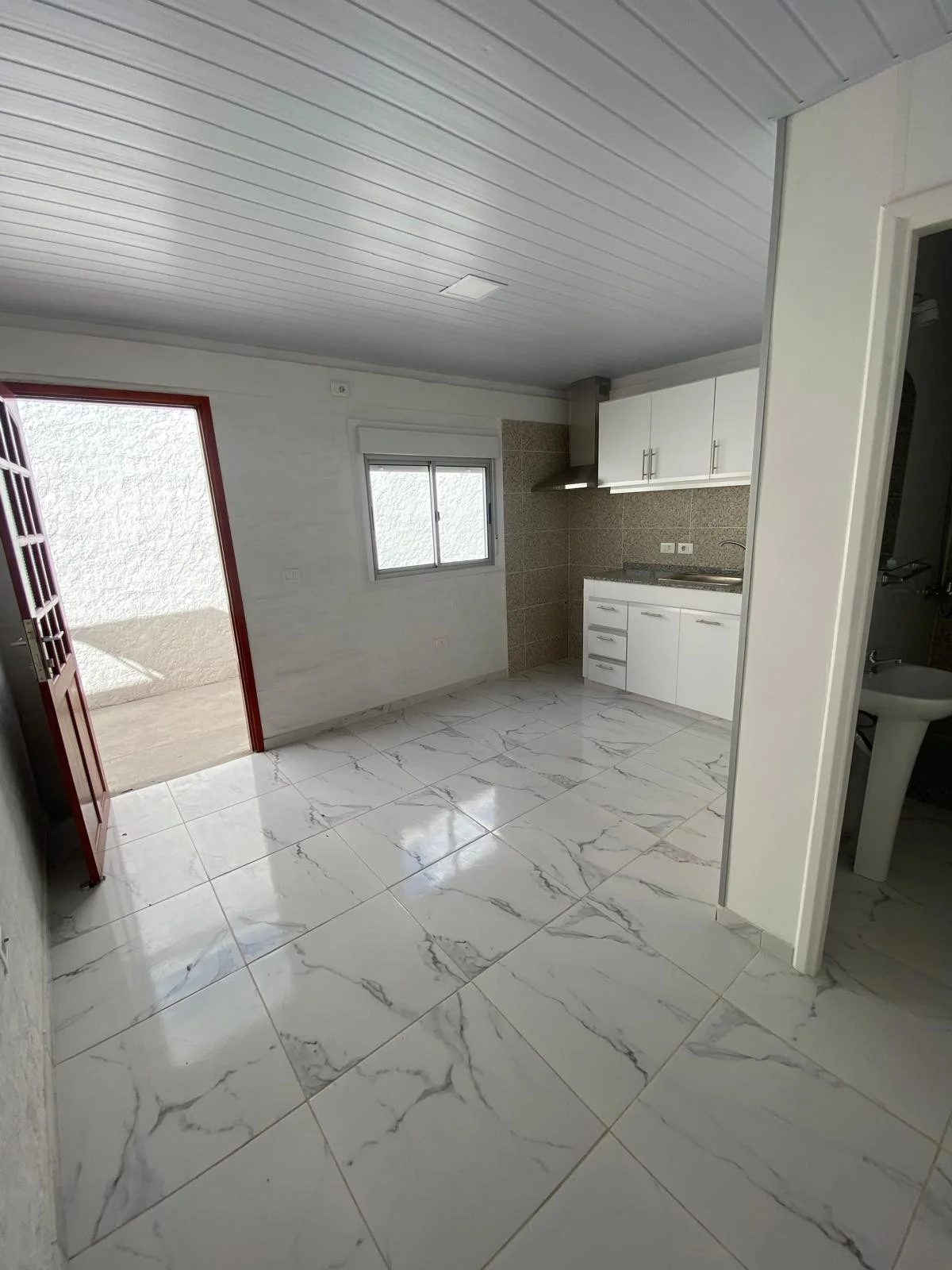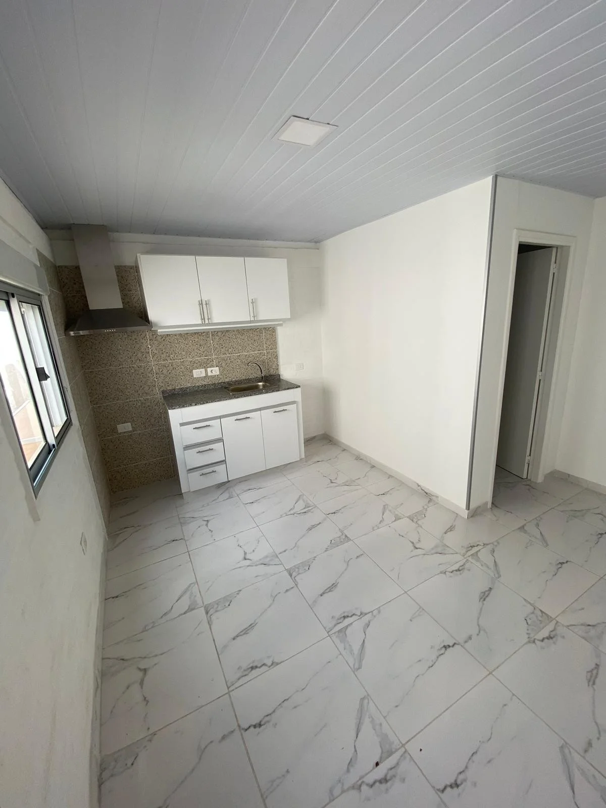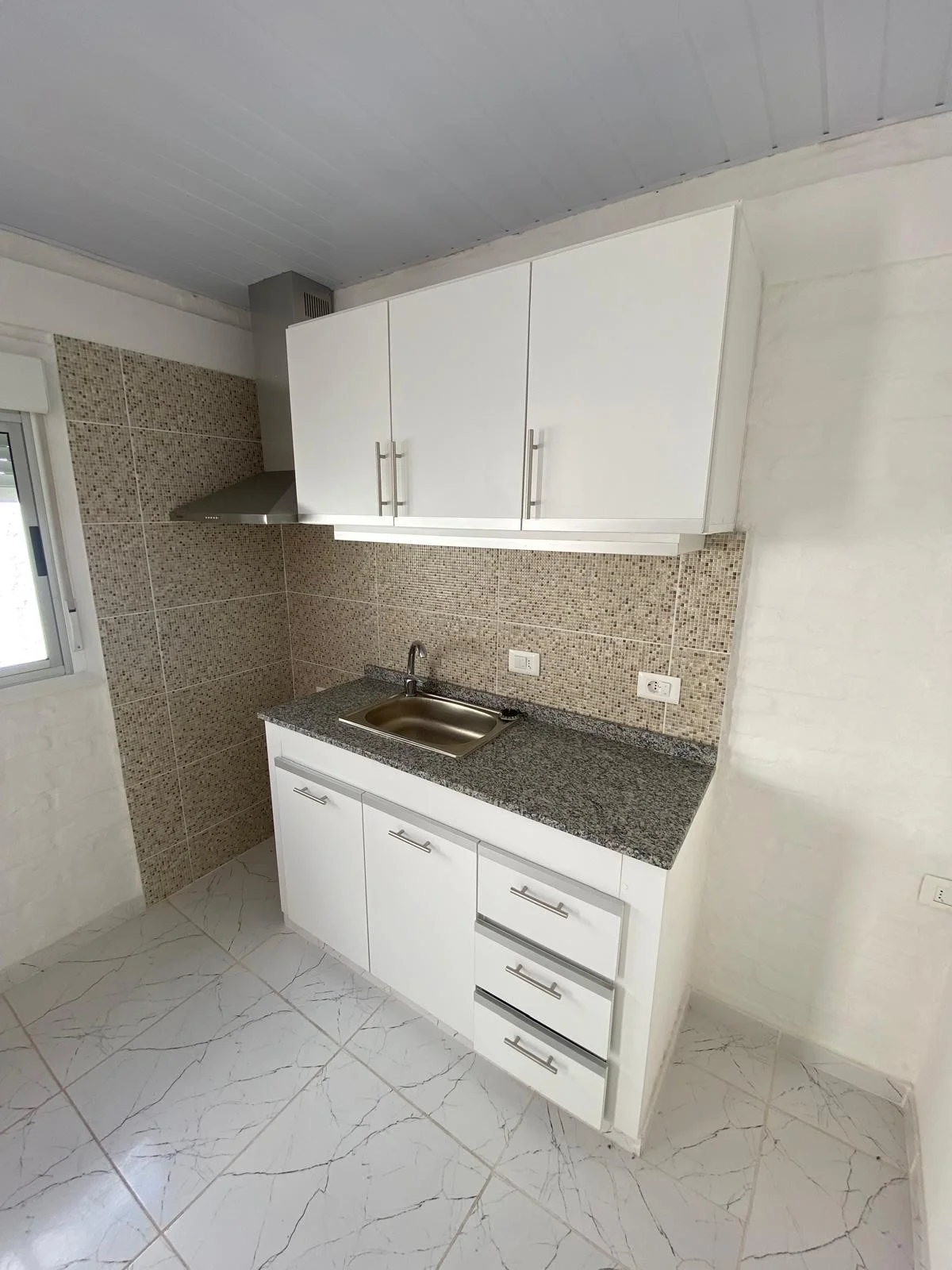 Living comedor, cocina integrada con mesada, placares y campana extractora.