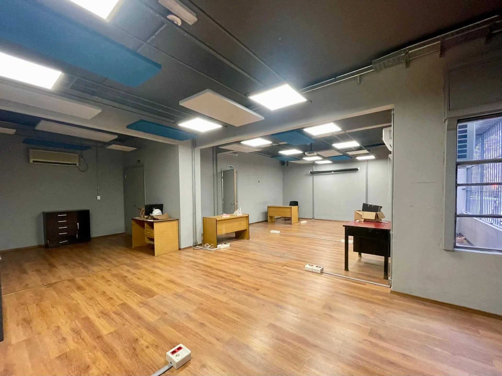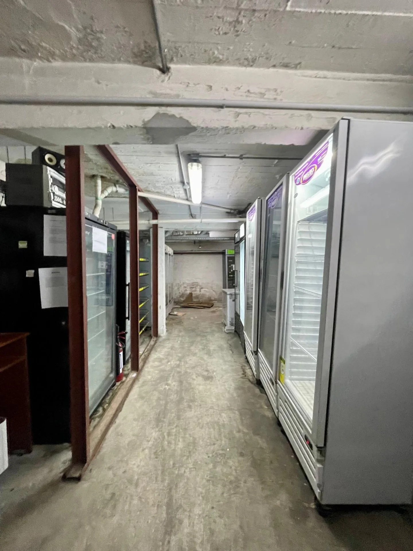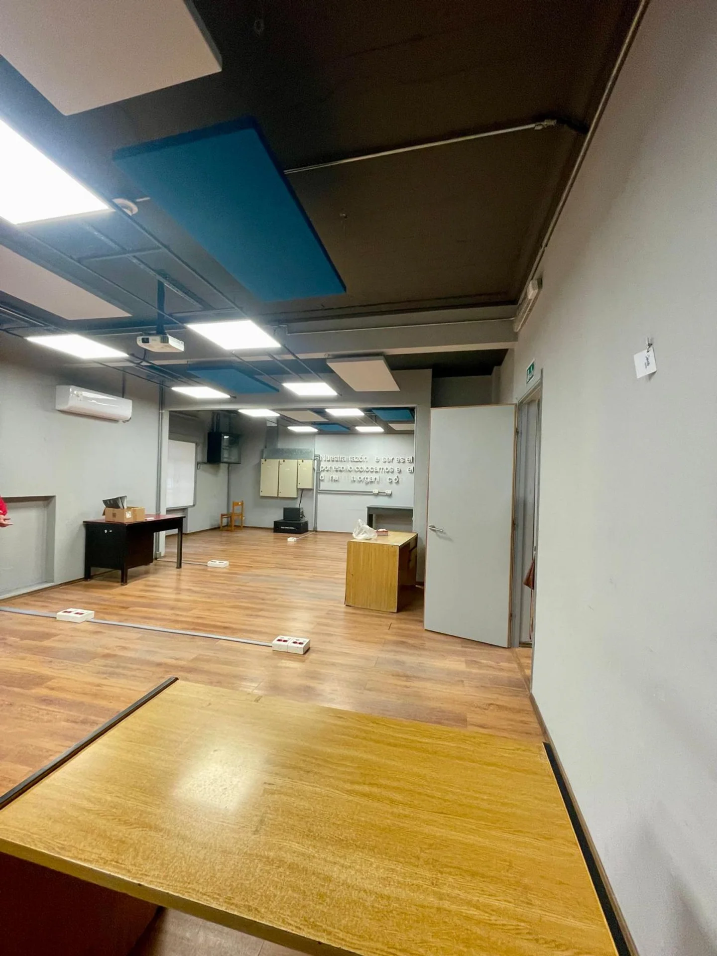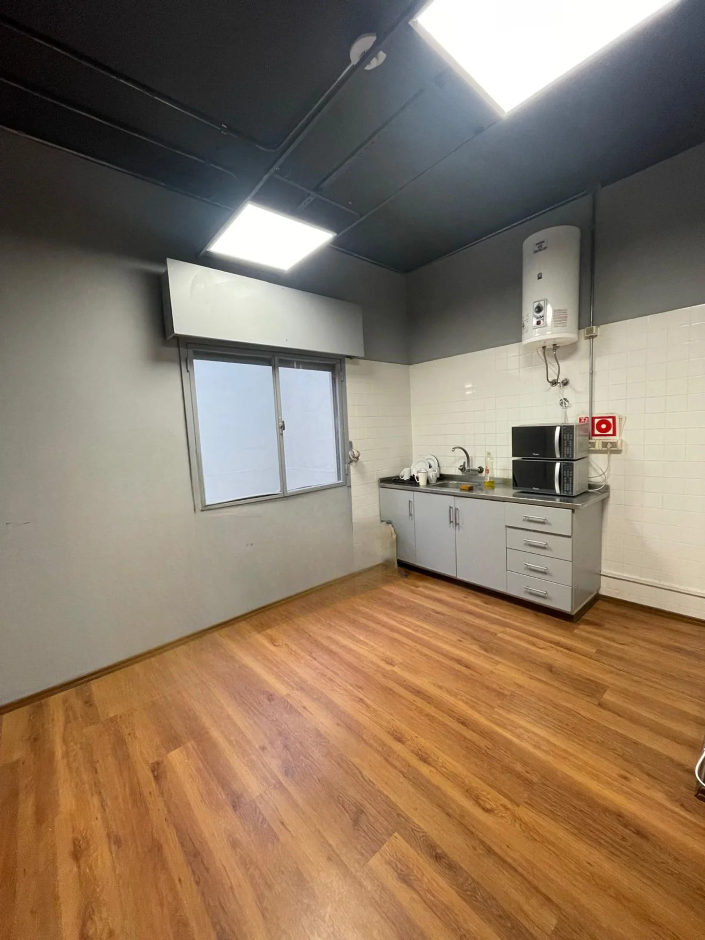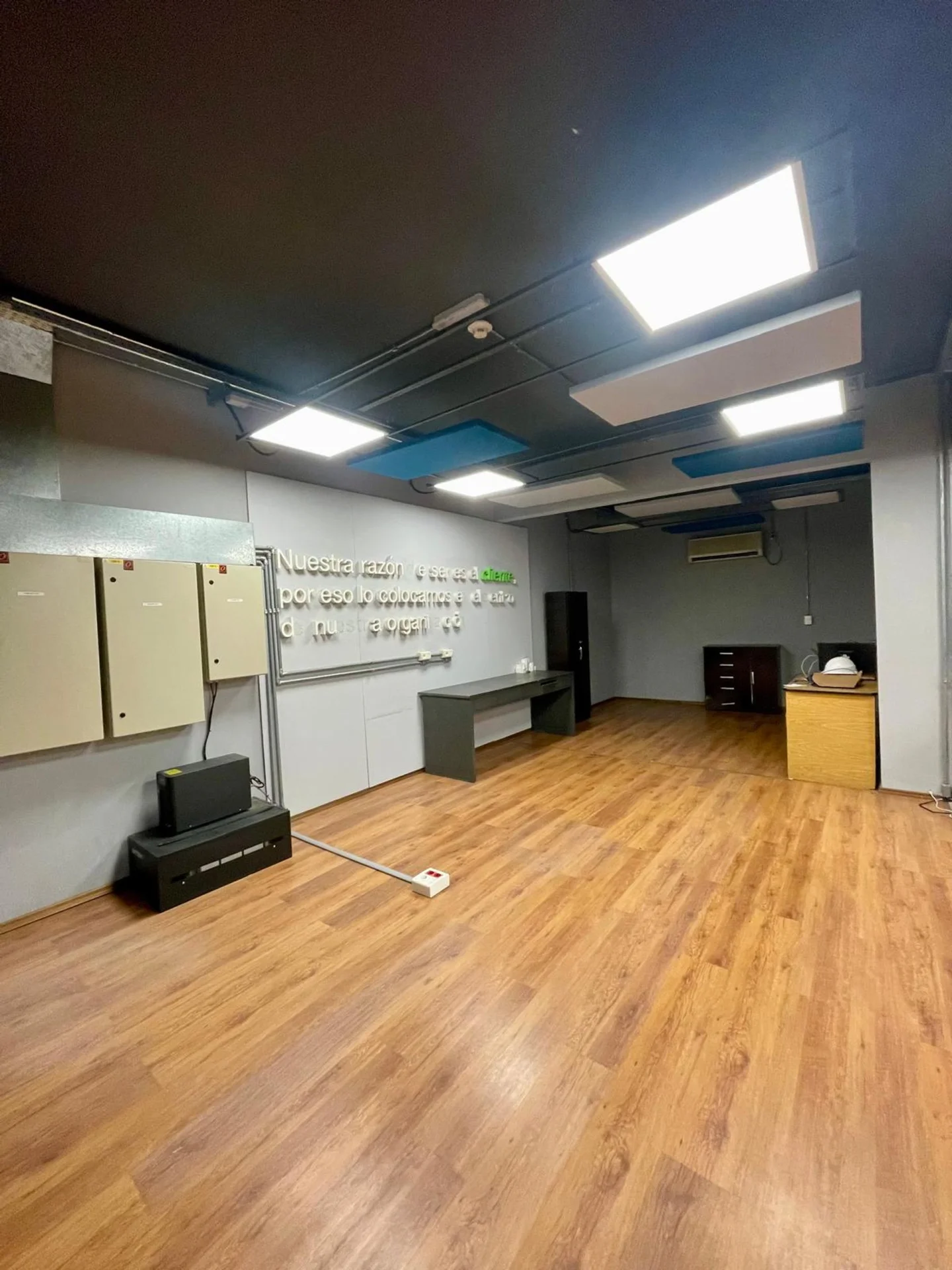 Hall de entrada con cerramientos de vidrios blindex y puerta de doble hoja para área de autoservicio, salón desarrollado en varios niveles con presencia de algunas columnas centrales, cielorraso de espuma aislante e iluminación empotrada, artefactos con tubos lux modernos y pisos de parquet.