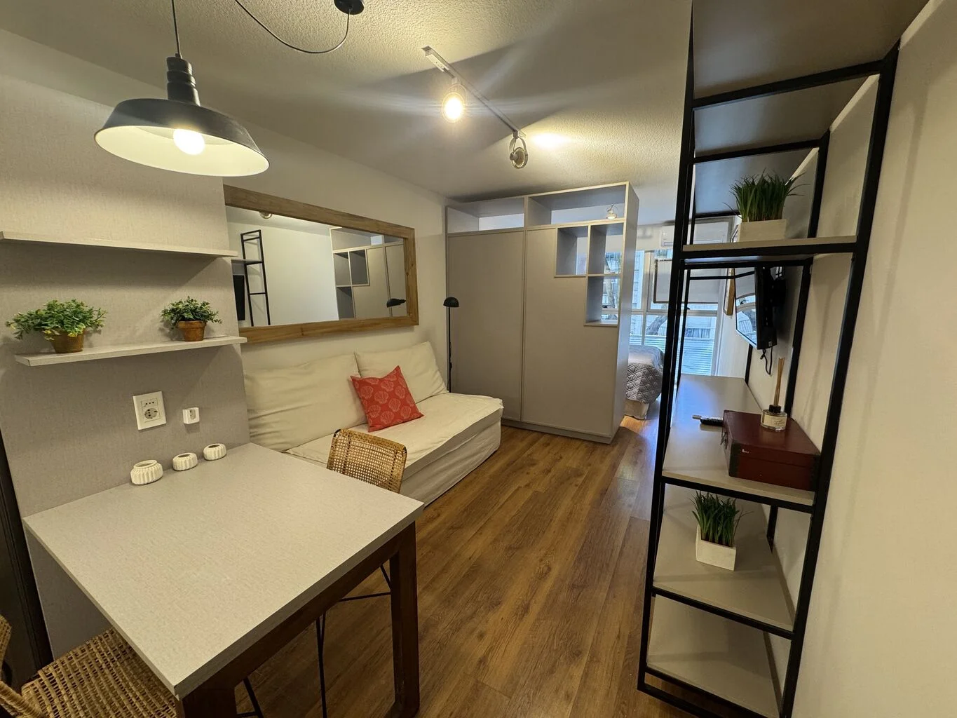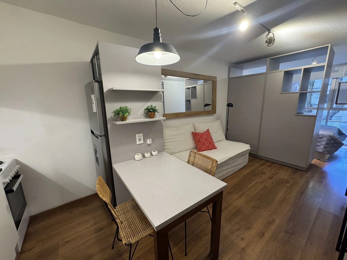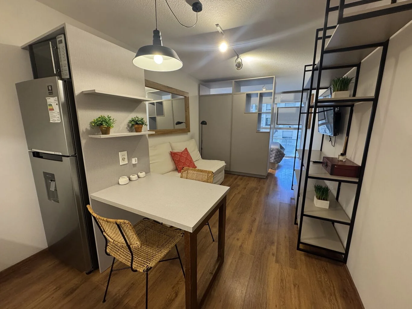 Monoambiente amueblado, muy bien aprovechado, ubicado sobre calle Ellauri, en un segundo piso.
