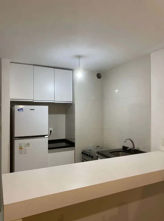 La unidad se encuentra al contrafrente, con orientación sur, lo que brinda mayor tranquilidad. Se desarrolla en un tercer piso y cuenta con 30 m² totales (28 m² internos y 2 m² de balcón). Es un ambiente amplio y luminoso, con living integrado, cocina semi definida con barra desayunador, aéreos y mesada, y baño completo. Además, dispone de una agradable terraza que aporta un espacio exterior propio.