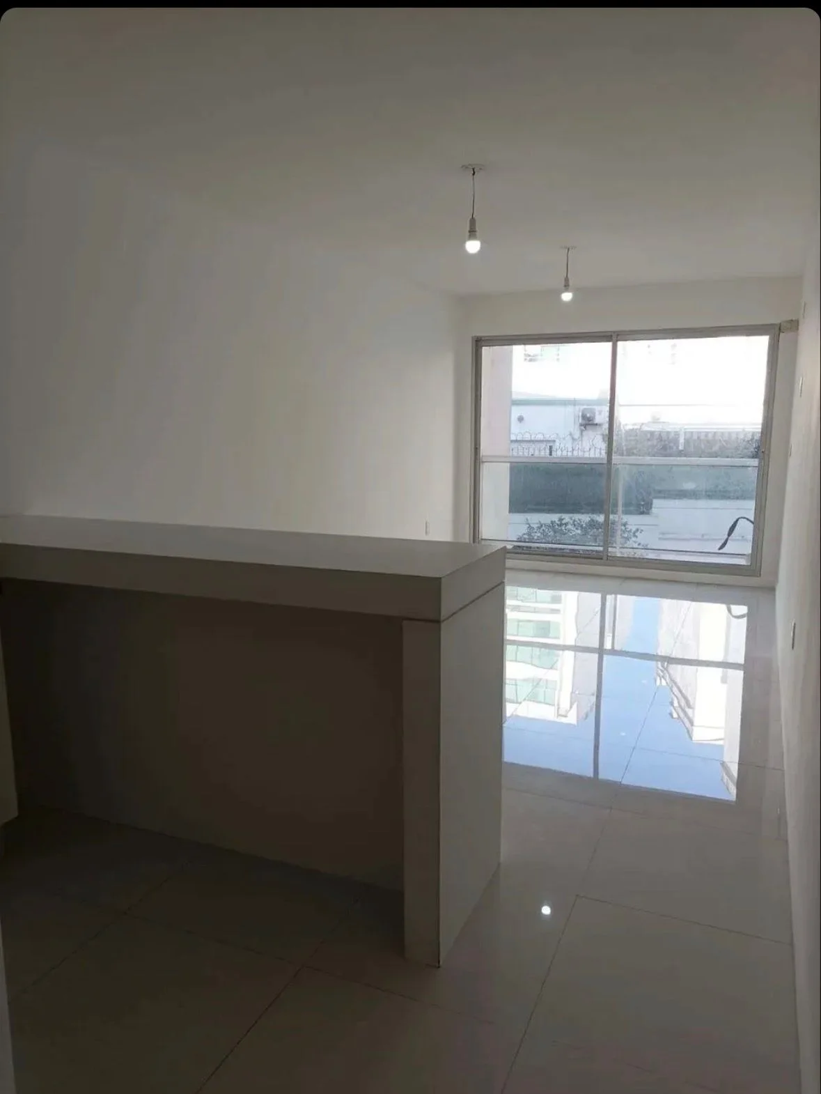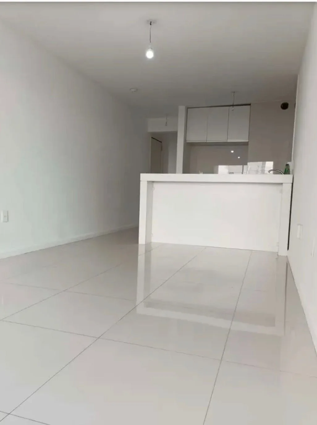 Entre sus características: no admite mascotas, no tiene cochera, depósitos ni placares, y no cuenta con parrillero, patio, jardín ni lavadero. Incluye agua corriente y presenta una disposición funcional con cocina, living y balcón.