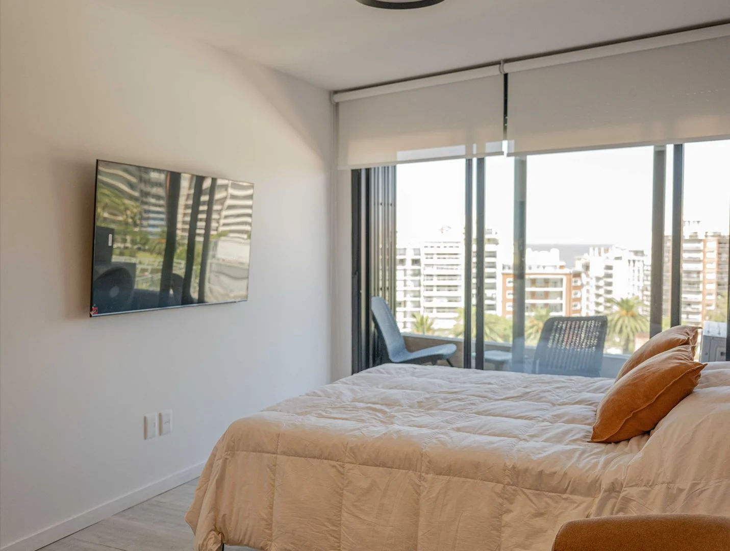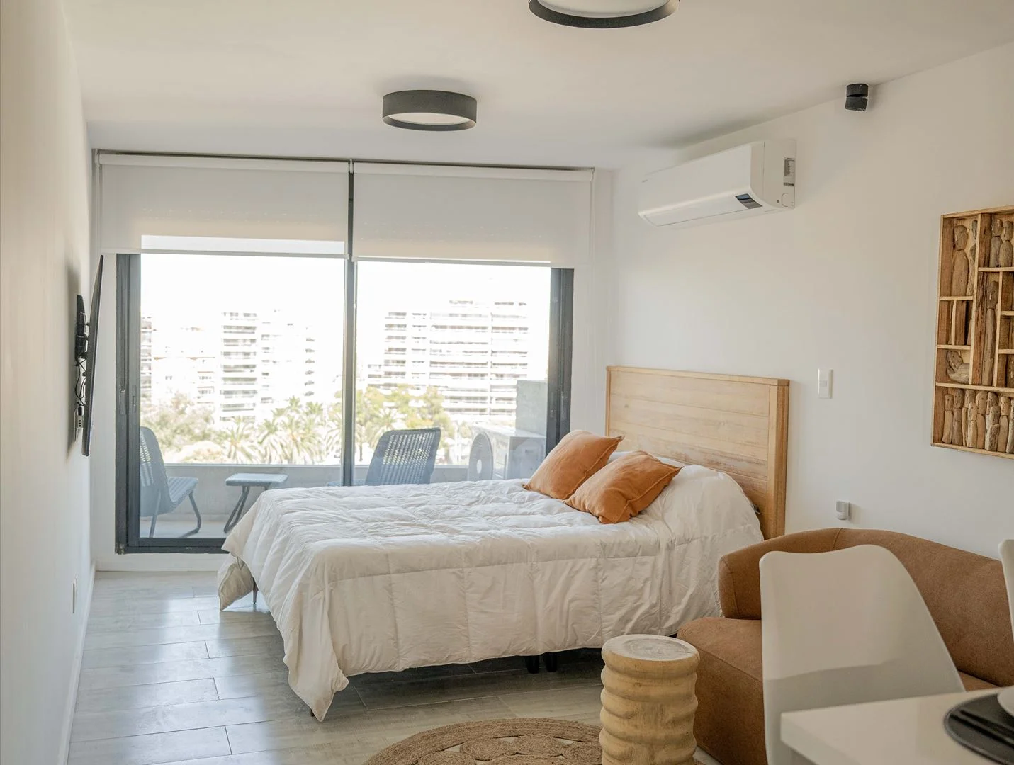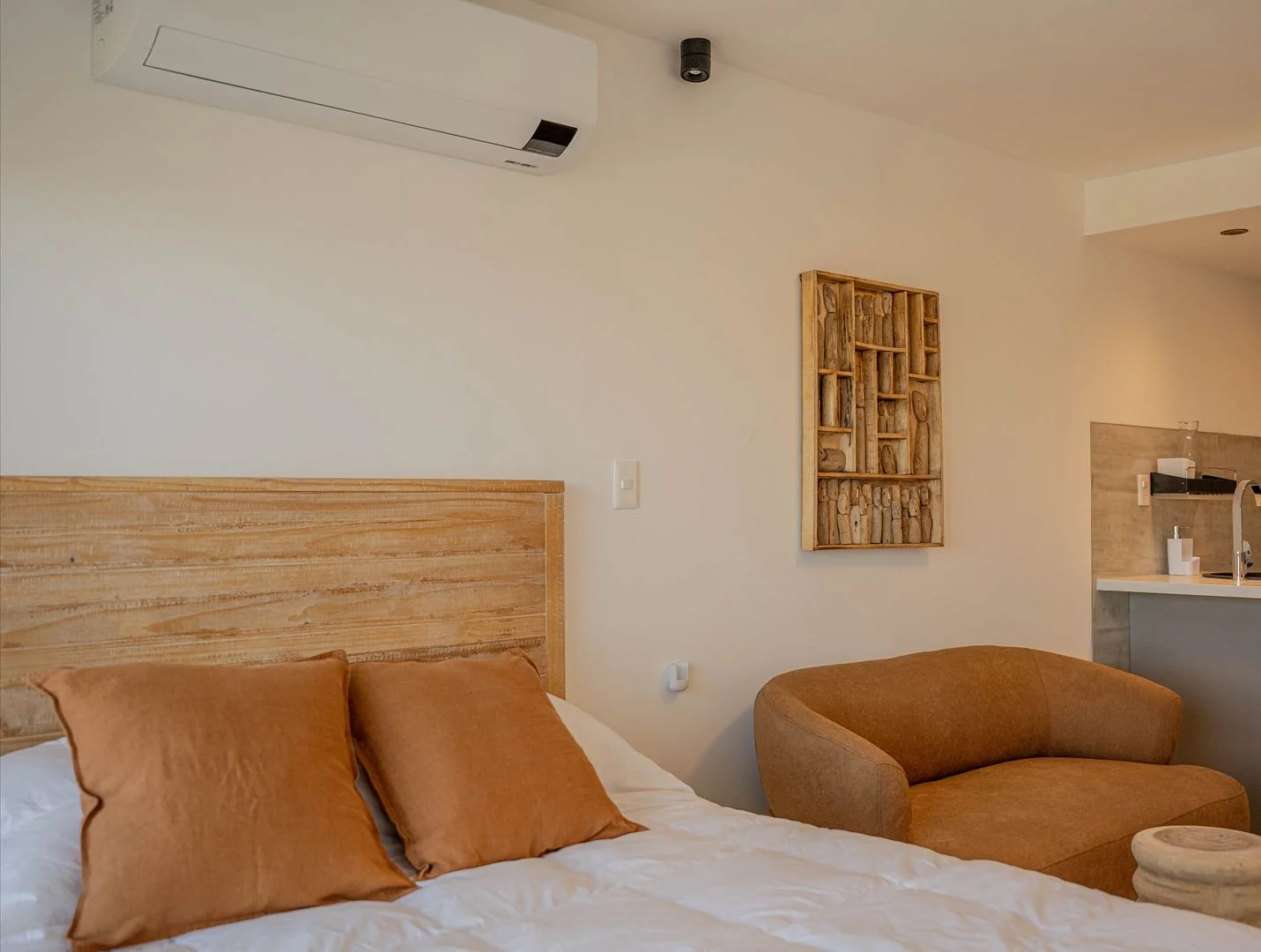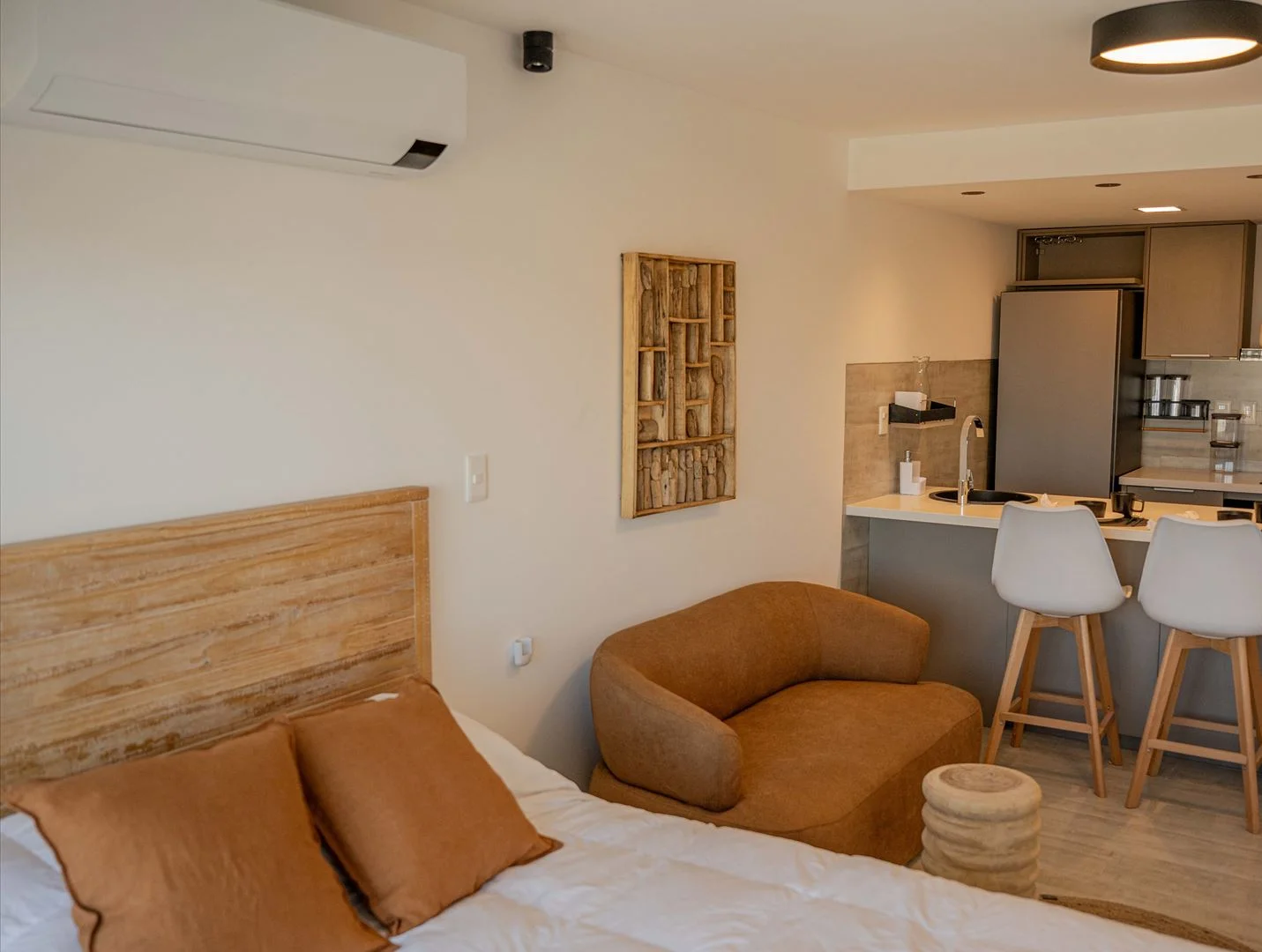 Sommier Queen de alta densidad, placare, Smart TV Samsung 55 4K, equipo de audio Bang y Olufsen, Aire acondicionado Samsung Inverter frio/calor 18.000 BTU. Calefacción por losa radiante