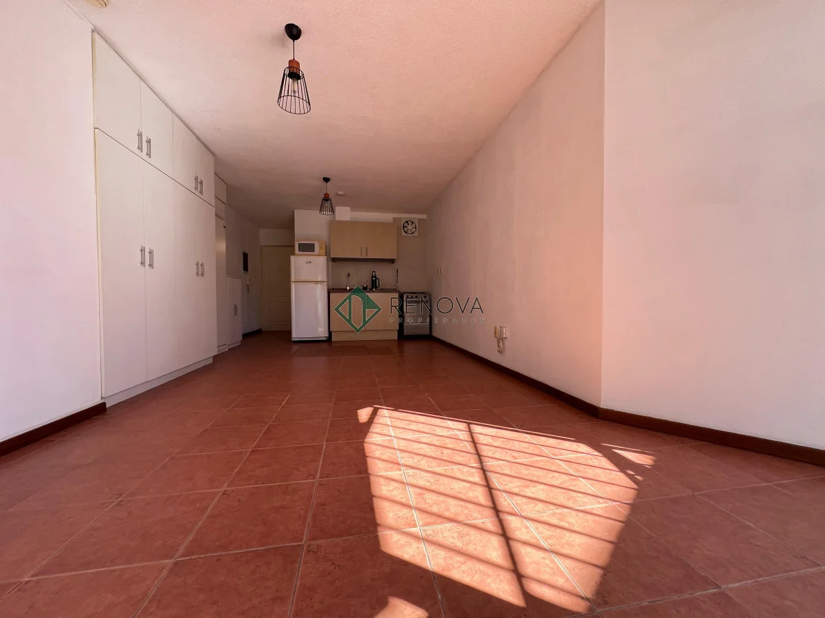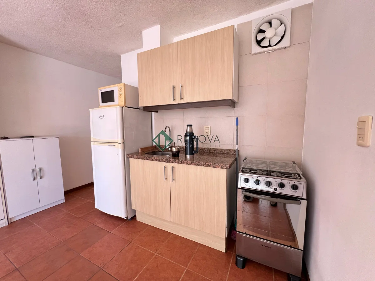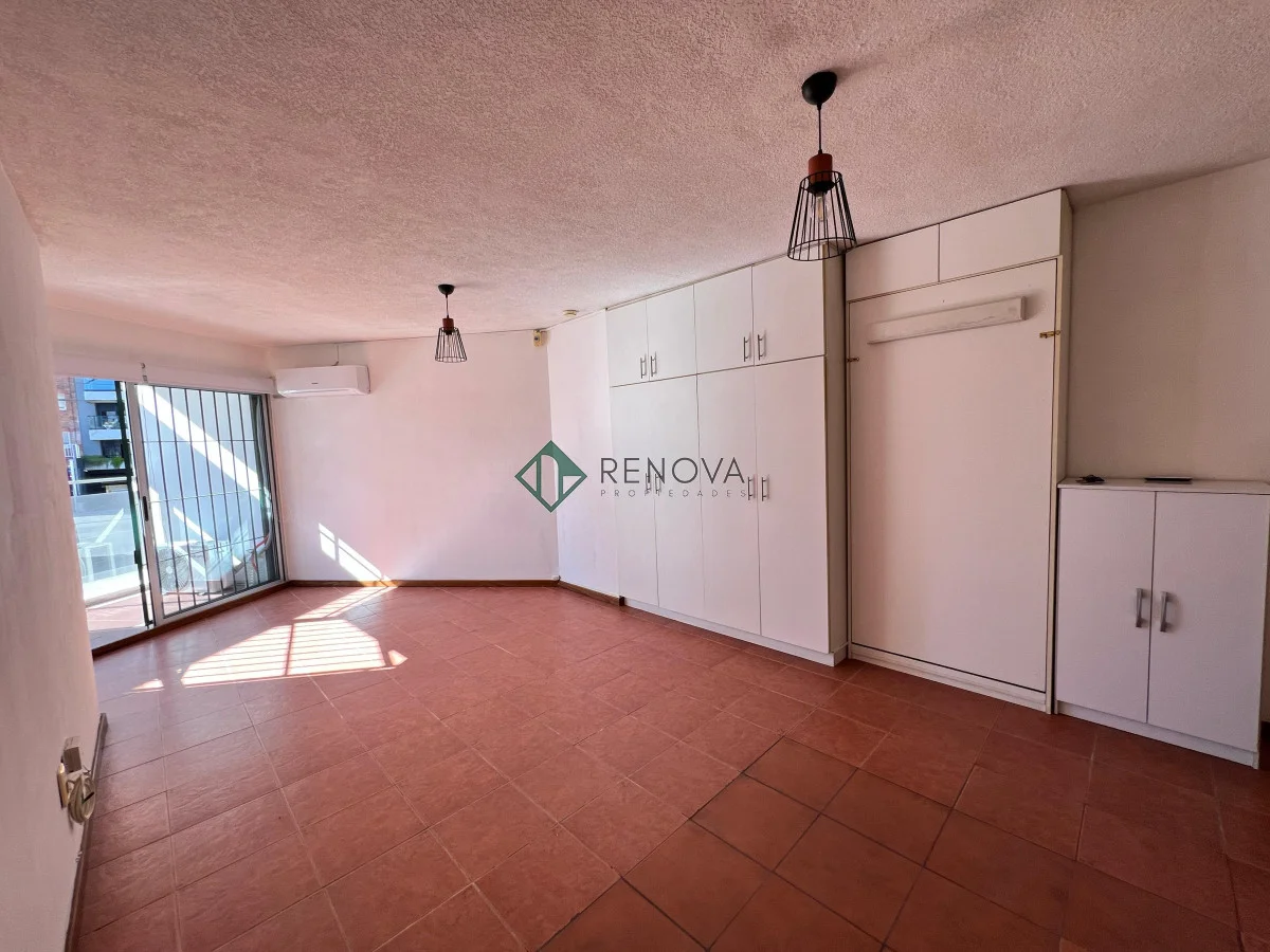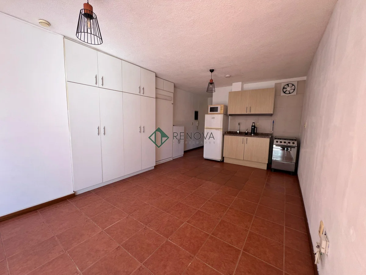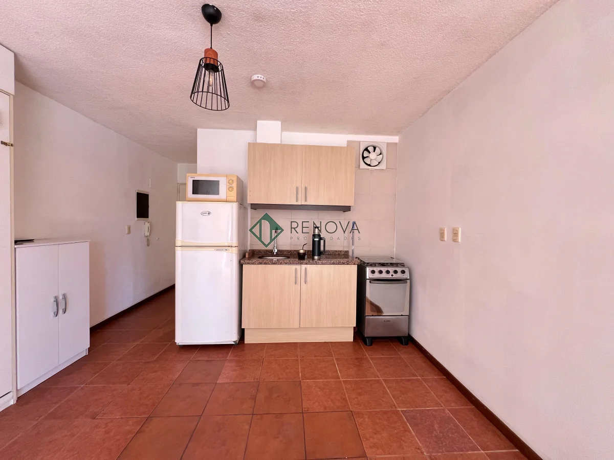 Dirección: 21 de Setiembre esq Sarmiento Alquiler: $21.000 Gastos Comunes: $4.500 Garantías: Aseguradoras -Monoambiente amueblado con: Placard incluido, cama rebatible, heladera, cocina, microondas, AA, calefón, cortinas -Cocina intergrada con aéreos y bajo mesada -Balcón al frente, super luminoso} -Se acepta mascota -Baño completo con conexión para lavarropas Renova Propiedades Referencia Interna : Tera-976