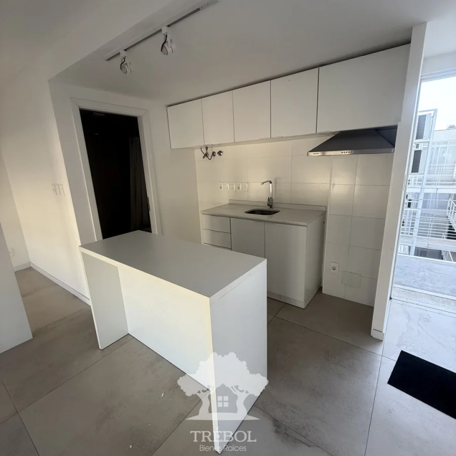 - Cocina integrada con barra desayunadora, campana extractora y múltiple espacio de guardado.