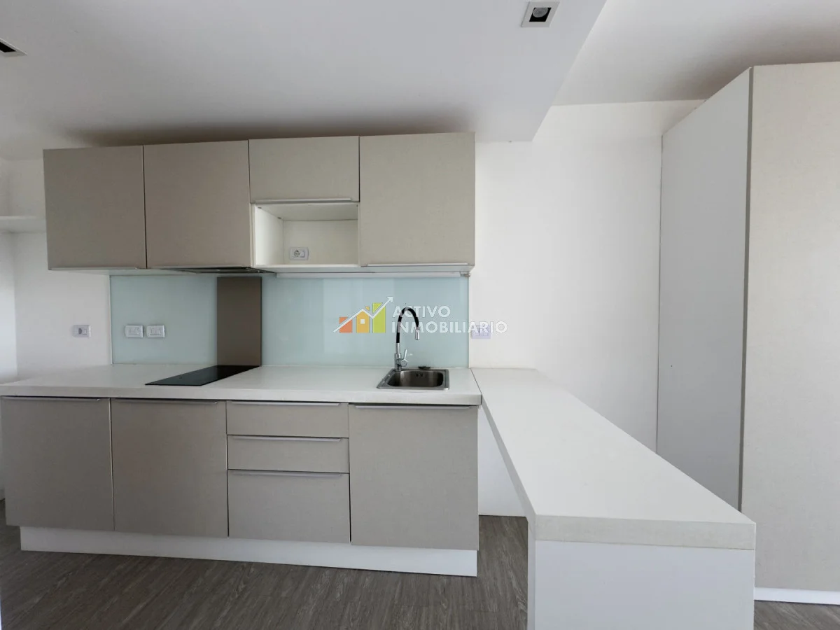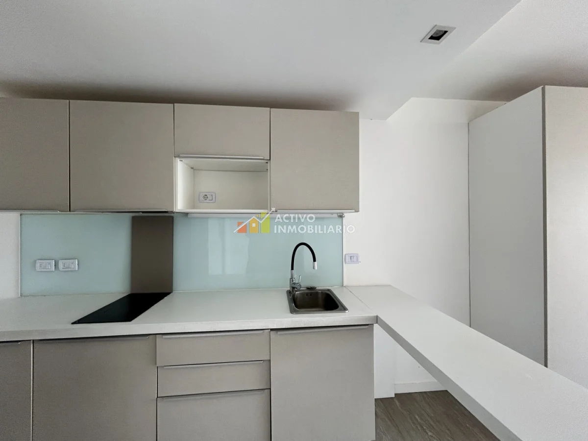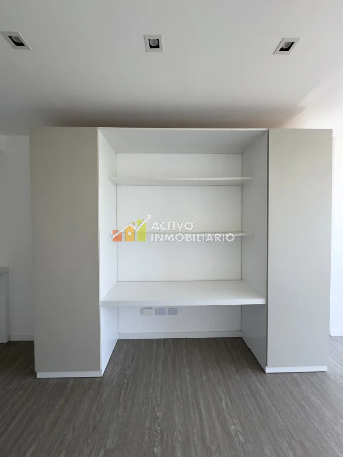 - Cocina integrada con placares aéreos, muebles bajo mesada, anafe y pileta