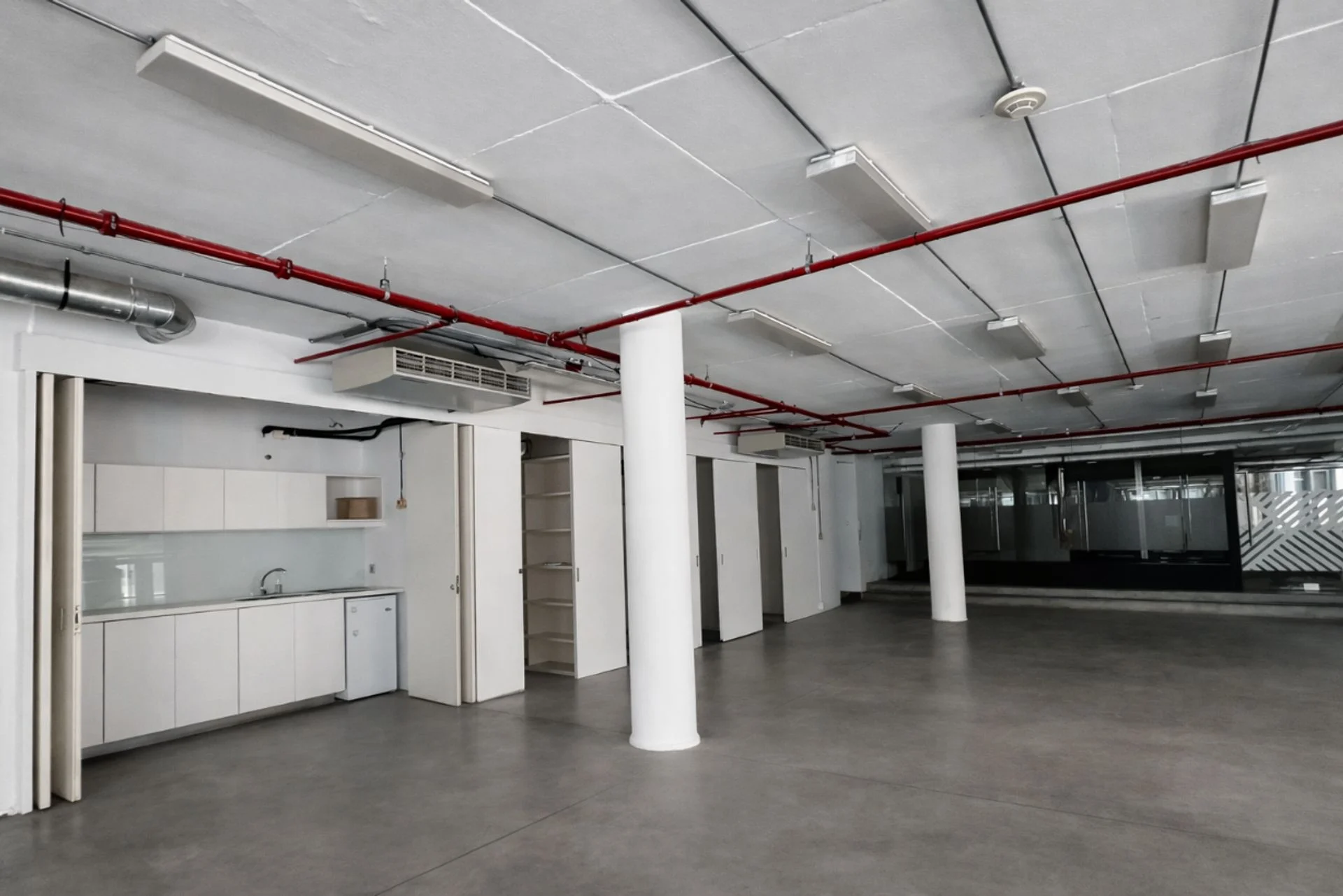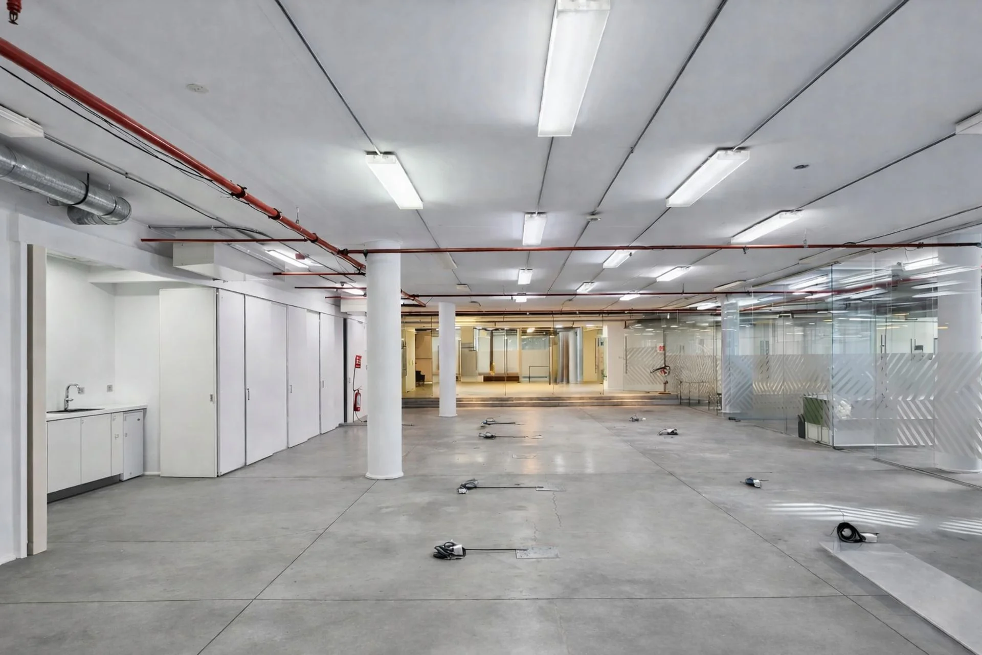 Cuenta con aire acondicionado central, divisiones en blindex y sistemas de seguridad conforme a normativa vigente: sprinklers y detectores de humo en todos los ambientes.