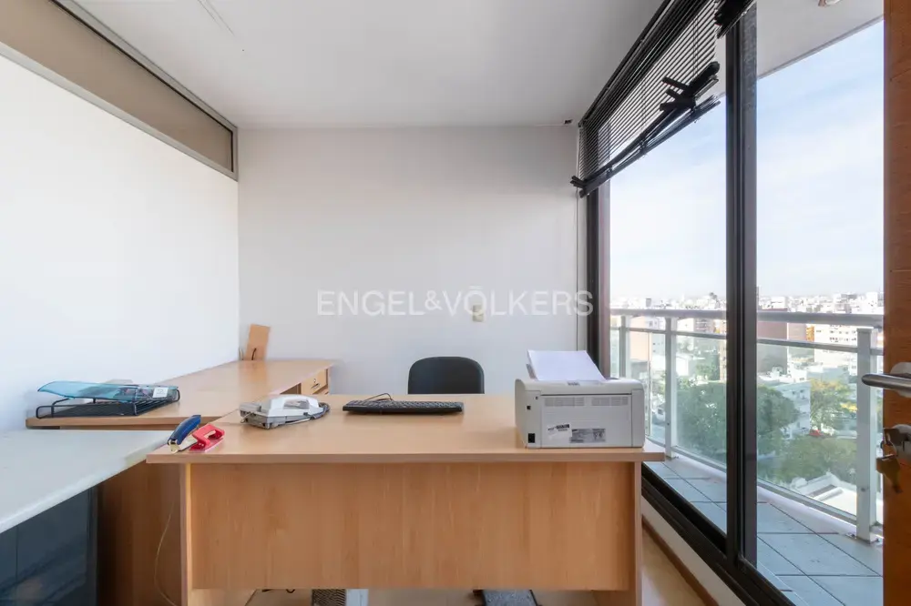 La unidad cuenta con cinco ambientes cómodos para trabajo de los cuales tres poseen vista al río de la plata y uno de ellos, el principal, con baño en suite. Una recepción amplia más un espacio para archivo o bien para otro escritorio. Kitchenette aparte, con batería de dos baños (hombre/mujer). Seguiridad 24hs.