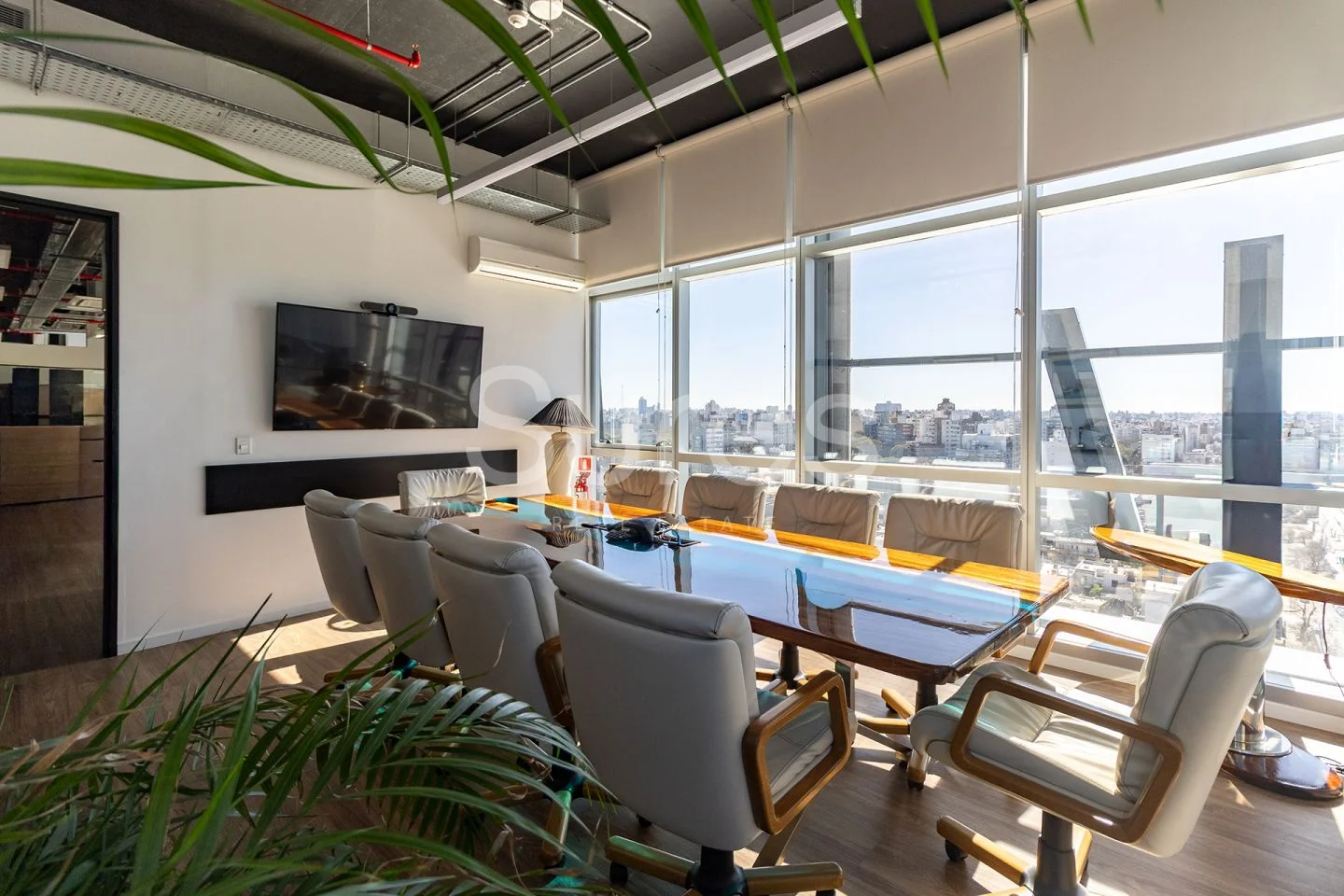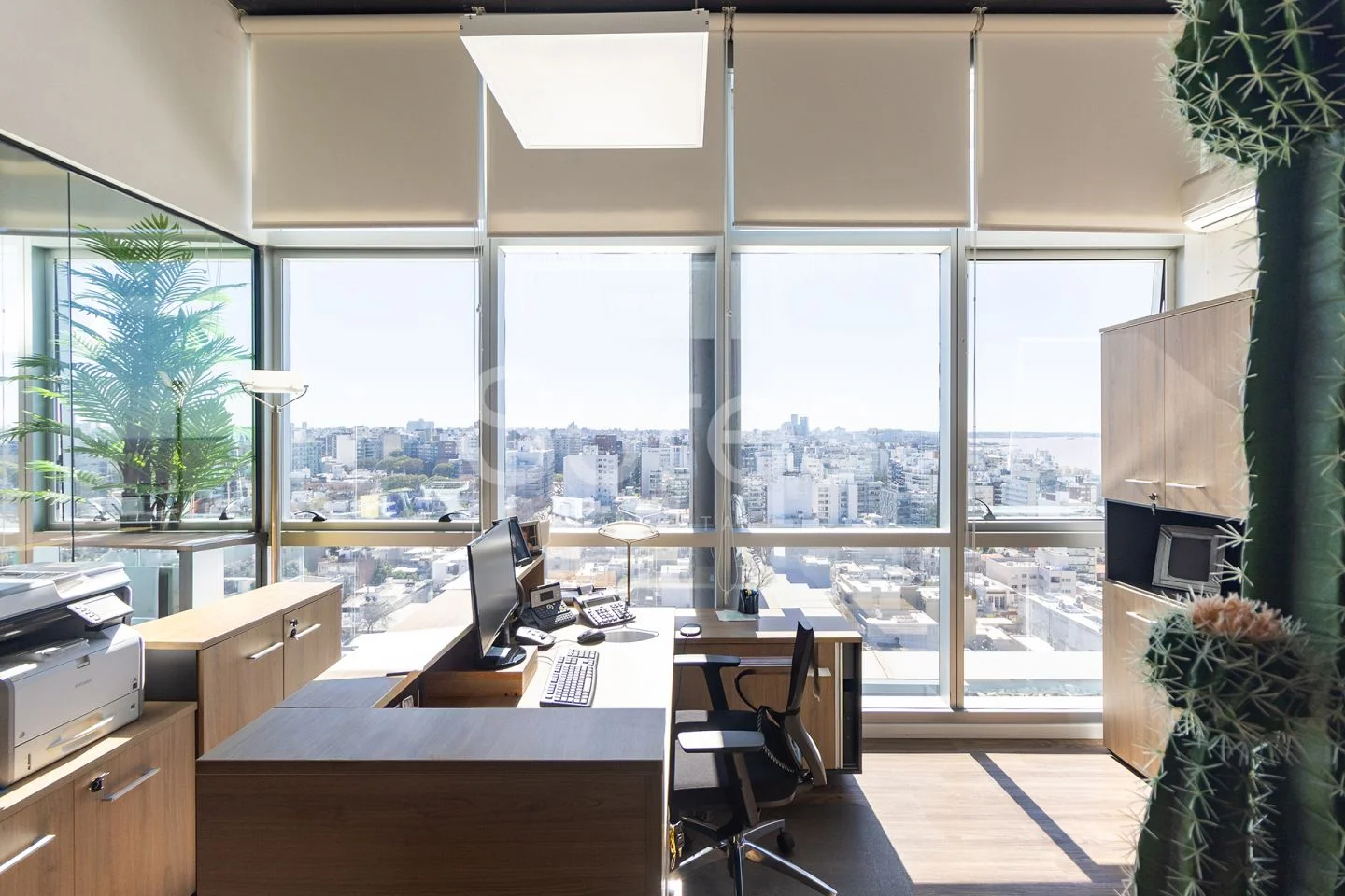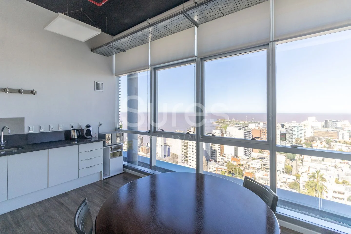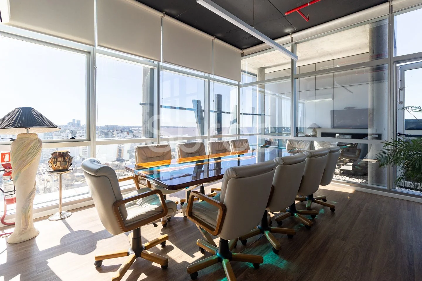 La oficina se desarrolla en un piso entero, con espacios abiertos y salas con despachos privados, todos sus ambientes con vista a la ciudad y al mar, 360 ª. Espacios funcionales y vistas panoramica 360º. Pronta para ocupar.