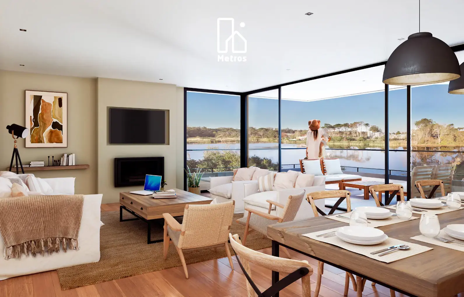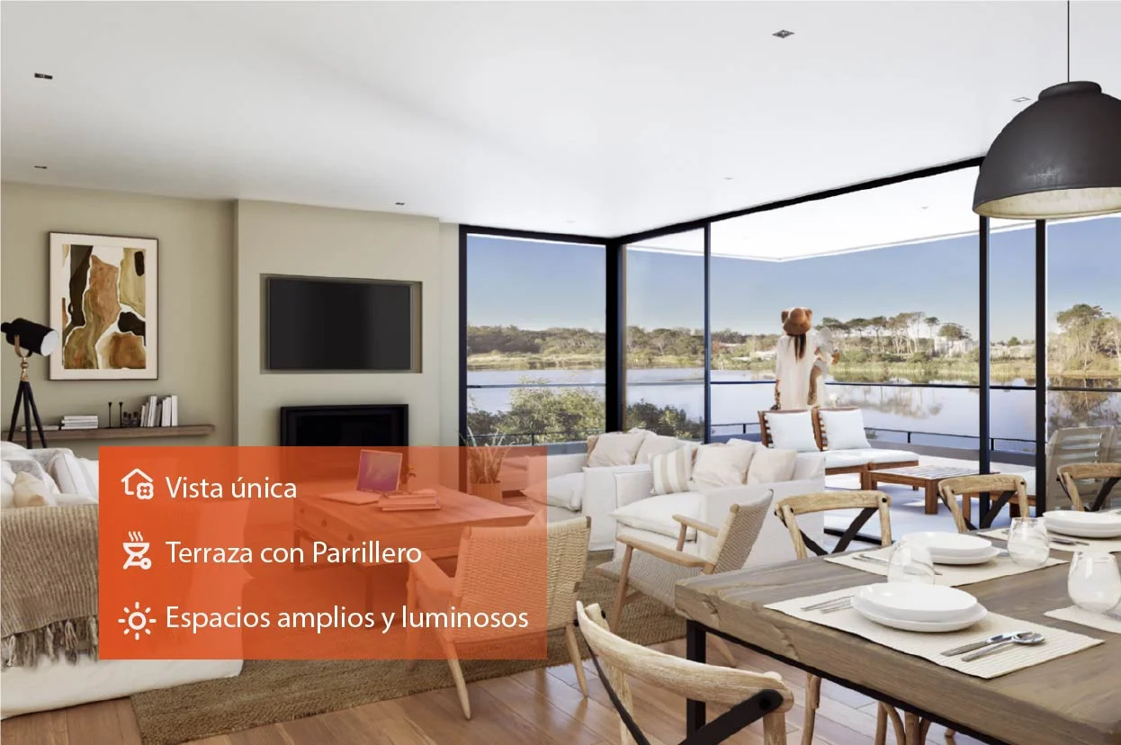 DESTACAMOSDuplex sobre el lago con una Vista Unica • Terraza con Parrillero • Espacios amplios y luminosos • Garaje dobleLA ZONAViví en un entorno con espectaculares vistas a los lagos de Parque Miramar. Un complejo de 2 torres ubicado en una zona privilegiada y en pleno crecimiento de Carrasco Este, rodeado de lagos y naturaleza donde tendrás una calidad de vida relajada por la paz que te da el entorno. Disfrutá de actividades en el entorno verde, podrás realizar paseos y deportes en el lago. Ubicado en una zona ideal para invertir gracias a su crecimiento exponencial en los últimos años con proyectos con gran demanda, tanto para alquiler como para reventa. Con facilidad de transporte y movilidad por estar sobre Av. de las Américas y Giannatasio, y su conexión a la ciudad, con fácil salida al Este evitando el tráfico de salida del fin de semana. Frente al mall Portal de las Americas con todos los servicios que necesitas. Además colegios como Stella Maris y Alemán bastante cerca, con el centro de Carrasco a 8 minutos y a menos de 15 minutos de Zonamerica. EL EDIFICIO - ANGRAUn conjunto de cuatro edificios, con un estilo contemporáneo y un uso sincero de los materiales. Sus unidades, cálidas y luminosas, incluyen opciones de 1, 2 y 3 dormitorios: algunas con jardines privados, otras en formato dúplex frente al lago, y penthouses con terrazas exclusivas.El proyecto ha sido diseñado con especial cuidado para resguardar la privacidad, optimizar los espacios habitables y realzar las vistas hacia el parque y el lago.Un escenario pensado para conectarse con la naturaleza y disfrutar de un horizonte que se funde con el infinito.Cuenta con excelentes amenities: Piscina • Gimnasio • Club House • Muelle y playa sobre el lago • Acceso controlado 24hs • Cámaras CCTTV • Garajes y cocheras AMBIENTESLiving comedor • 2 dormitorios • Cocina integrada •3 Baños • Terraza • Parrillero • Garaje dobleEL APARTAMENTODuplex que cuenta con 128 m² totales, ubicado en Piso 2 y 3.El living comedor cuenta con un gran balcón con parrillero, por el cual ingresa mucha luz. El apartamento tiene orientación Noreste. ¡La mejor orientación para la entrada de luz natural en las mañanas!Cocina integrada, con lindo diseño contemporáneo y buenas terminaciones. Esta cuenta con placares bajo y sobre mesada.En el segundo piso se encuentran los 2 dormitorios, ambos con vista al lago y placares incluidos. Los baños cuentan con equipamiento y terminaciones de alto nivel. Pisos de porcelanato, grifería y accesorios de baño de primera calidad.Cuenta con calefacción por losa radiante hidráulica a gas. Previsión para AA en todos los ambientes.PRECIOS Y GASTOSGastos comunes estimados: $11.500Comisión inmobiliaria: 1 mes mas iva¡Te deseamos suerte en tu búsqueda, y estamos para ayudarte tanto con esta propiedad o también para ayudarte buscando otras opciones en todo el mercado! No dudes en contactarnos.Inmobiliaria MetrosConsulta nuestra web y redes sociales para encontrar otras oportunidades.Instagram: metros.inmobiliaria