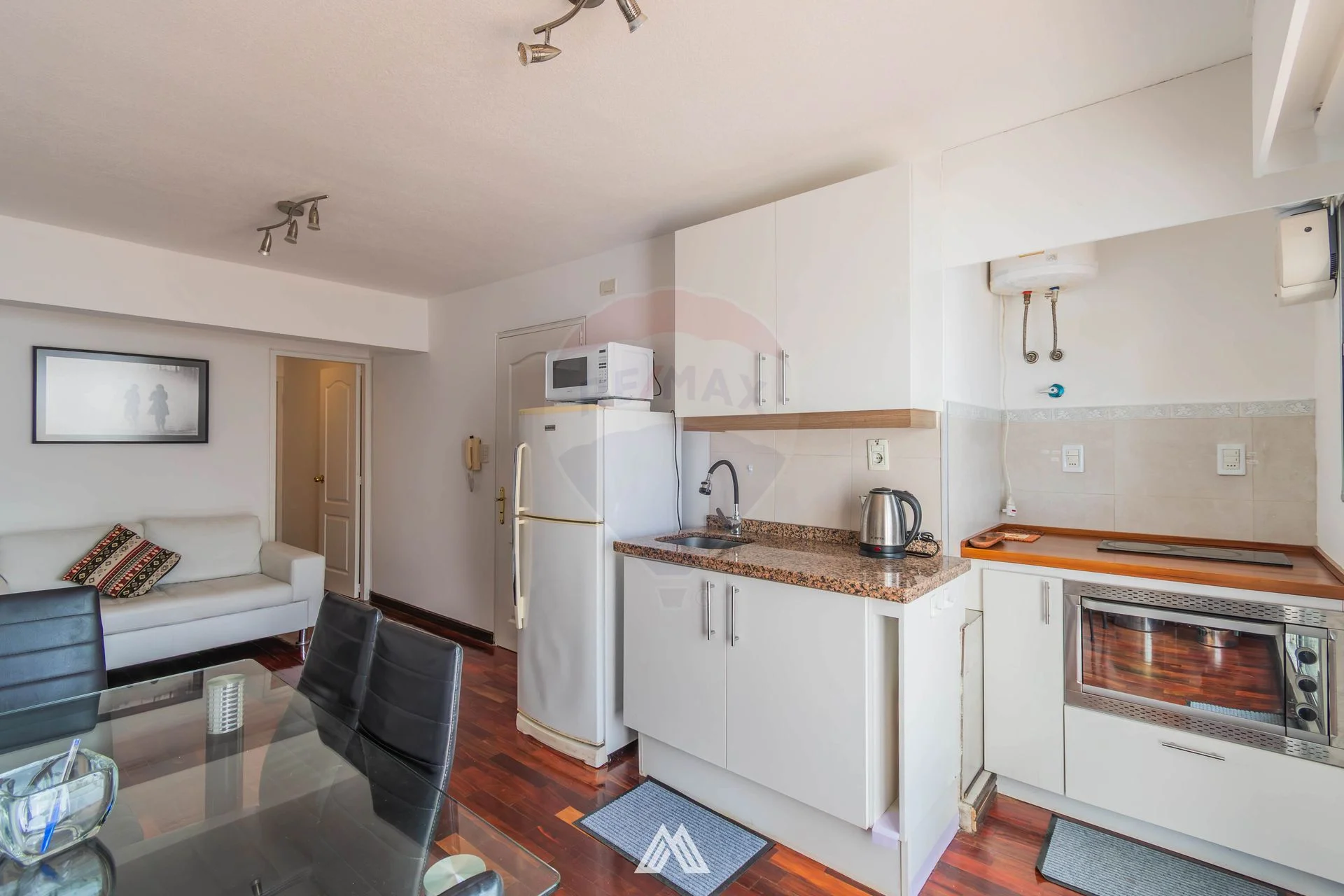 Living comedor cómodo con cocina integrada con horno empotrado y anafe.