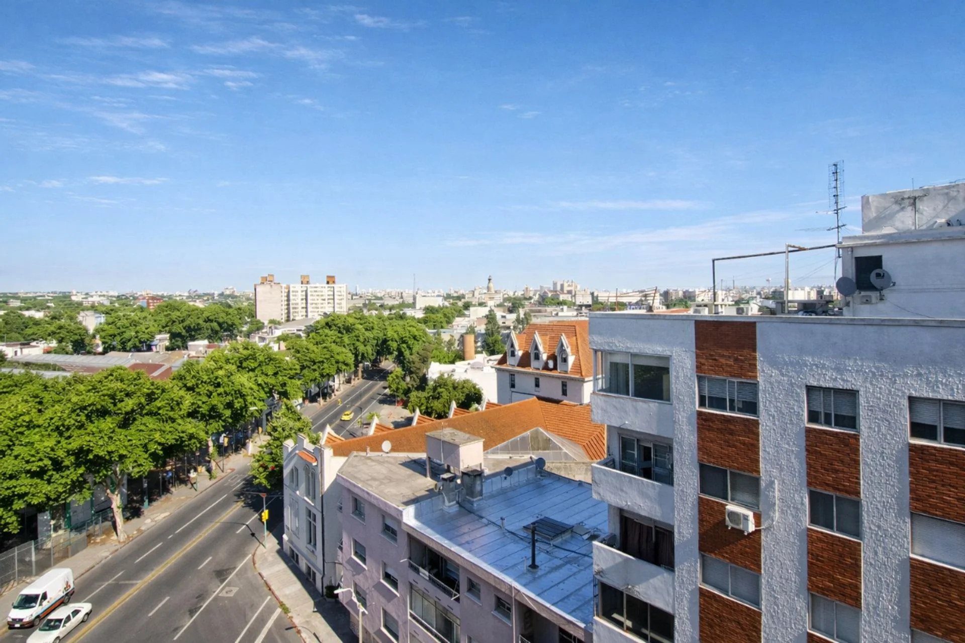 Desde el distribuidor se accede a una cómoda cocina, que se vincula tanto al estar comedor principal, de generosas dimensiones y con salida a un amplio balcón, como al estar íntimo y comedor diario, ambos con salida directa a extensas azoteas.