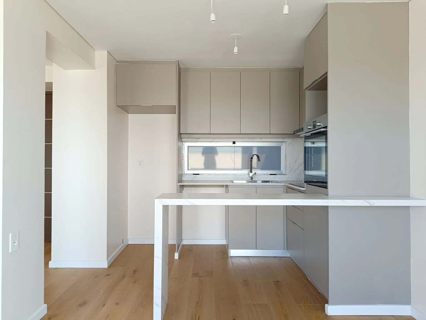 Living comedor con cocina integrada con acceso a amplia terraza con hermosa vista al mar. Cómodo dormitorio con placard , vestidor, baño en suite, baño social. Equipado con aire acondicionado, anafe, campana y horno. 2 cocheras