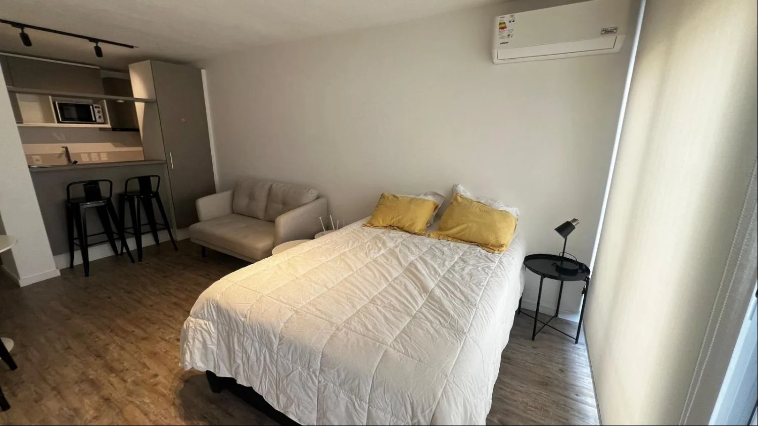 Espectacular monoambiente en el corazón de Pocitos Nuevo, a metros del Parque de la Amistady a unas cuadras de 26 de Marzo.Espacio muy luminoso, con terraza contrafrente despejada.Equipado, con ambiente living y comedor. Baño completoCocina integrada con anafe vitrocerámica, horno empotrado, campana y frigobar Baño completo con extractor, conexión para calefónAire acondicionado frío/calor.El edificio ofrece parrillero abierto en último piso y laundry con máquina de lavado y secado en planta bajaGastos Comunes $3.500 aprox (CW225543)