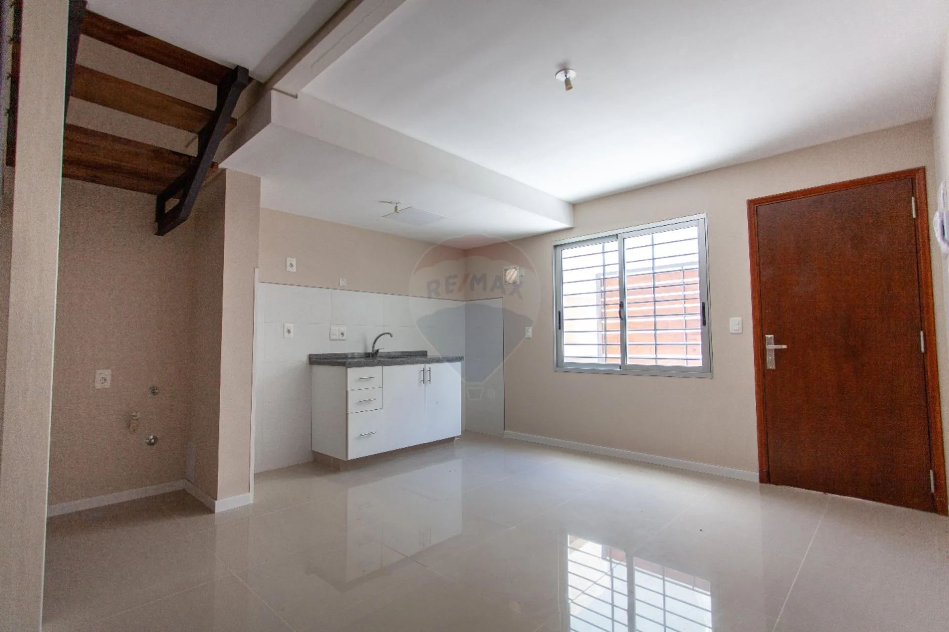 De construcción tradicional con revestimiento en yeso, aberturas de aluminio con vidrios de 5mm, el dormitorio cuenta con cortina de enrollar y revestimiento de piso vinílico flotante. Living comedor con cocina integrada con revestimiento de pisos en porcelanato, ventana con rejas, cocina con mesada de granito, muebles bajo mesada, pileta de acero inoxidable, grifería mono comando; previsión para termotanque y lavarropas, así como para aires acondicionados, y extracción de aire tanto en cocina como en baño.