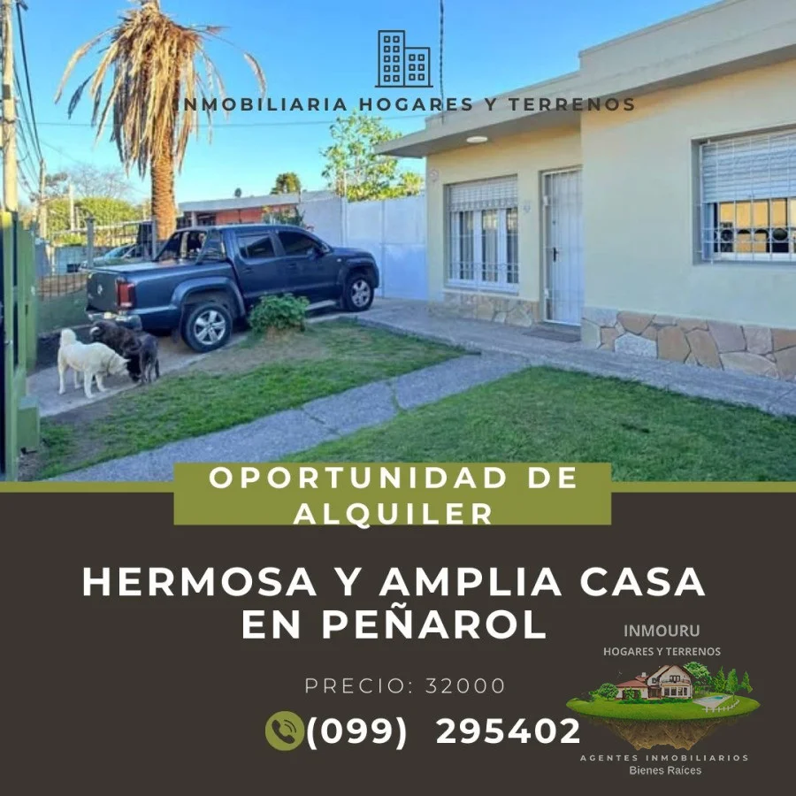 Alquilo Amplia y Luminosa Casa en Peñarol ubicada en la calle Shiller 4639 , con un amplio frente cercado, de 2 dormitorios, living comedor, cocina definida, un baño, galpón con conexión para lavadora y secadora, jardín y fondo completamente cercados, parrillero y garaje para dos autos y una moto. La casa cuenta además con cámaras, alarma y perfiles perimetrales. Acepta todo tipo de mascotas.