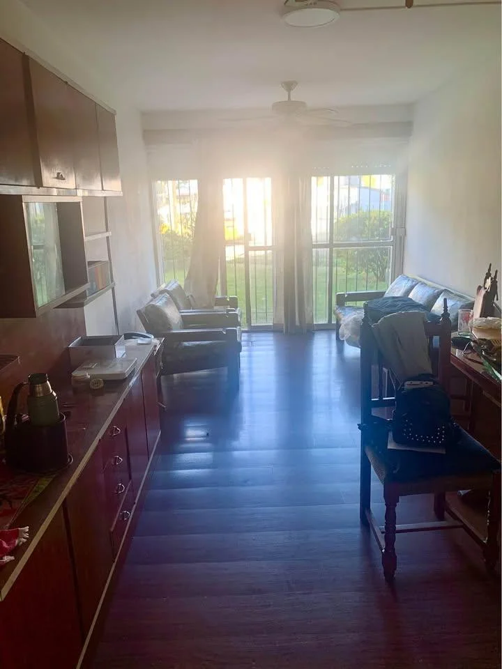 Es amueblado tal como se ve en las fotos: dormitorio matrimonial completo, cama chica y ropero en el otro dormitorio, juego de living y comedor. Los muebles son opcionales.