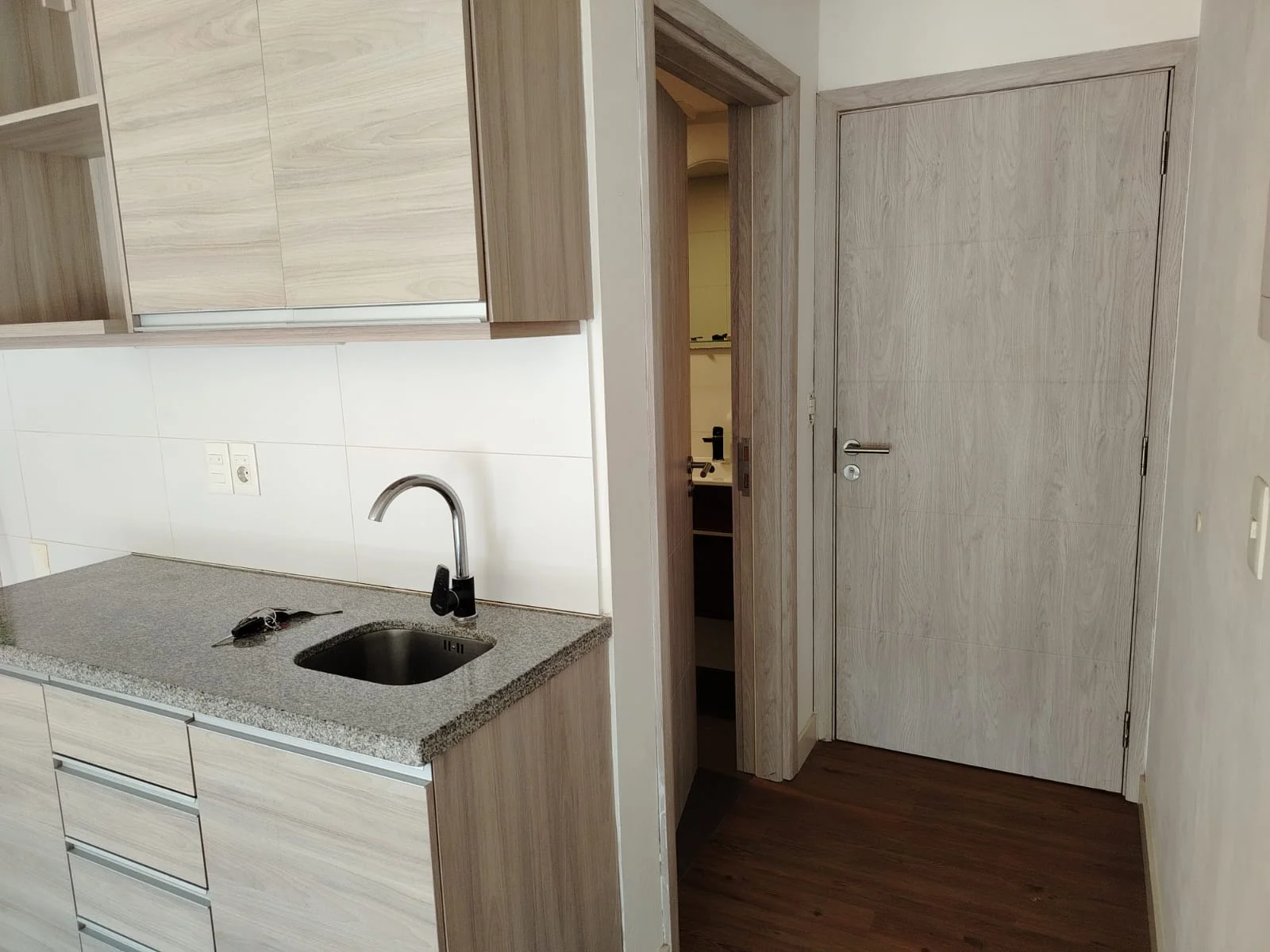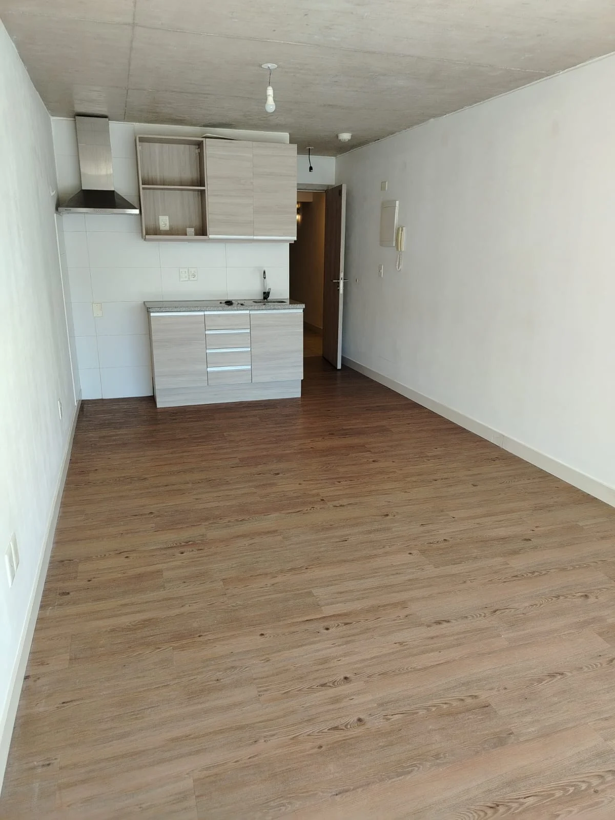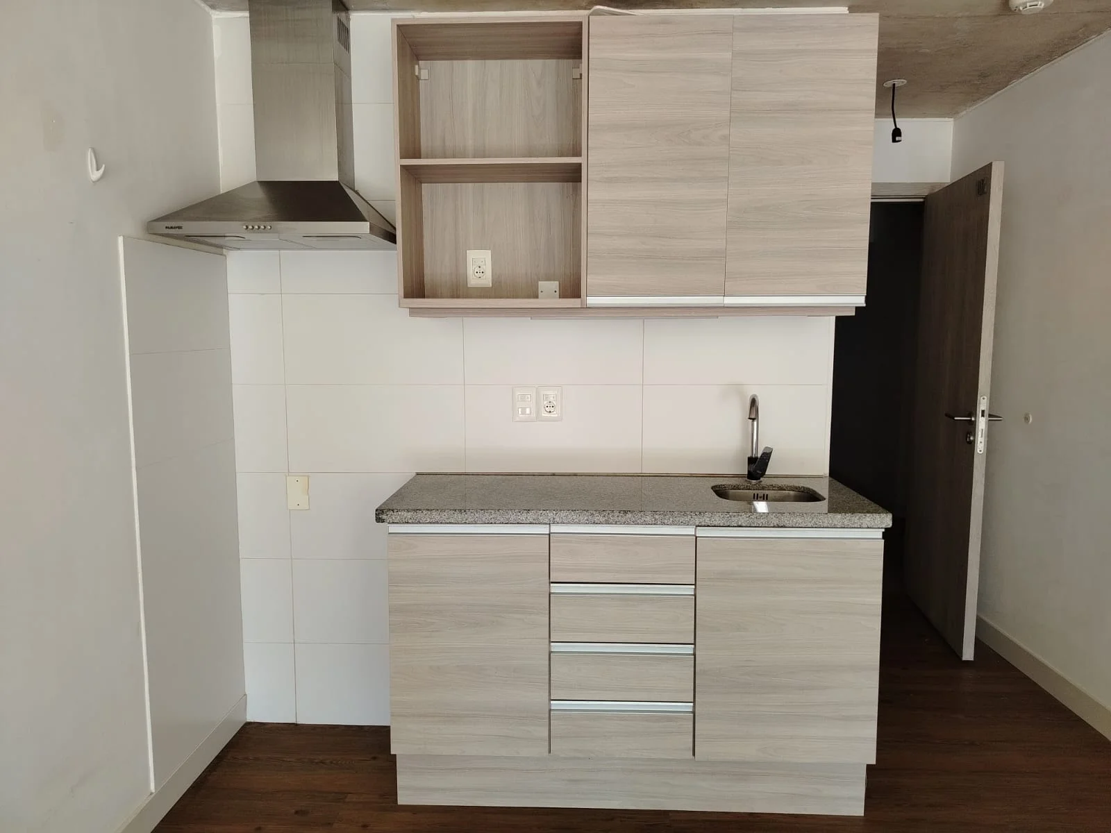 KITCHENETE CON MUEBLES AÉREOS BAJO MESADA Y CAMPANA EXTRACTORA.