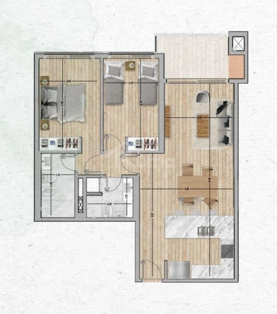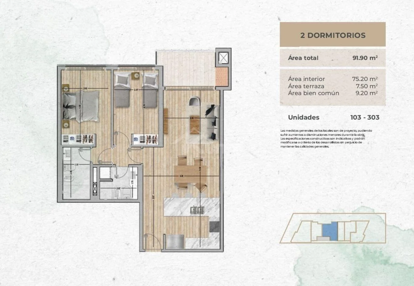 El apartamento cuenta con 75m2 interiores y 7,5m2 de terraza con parrillero propio!