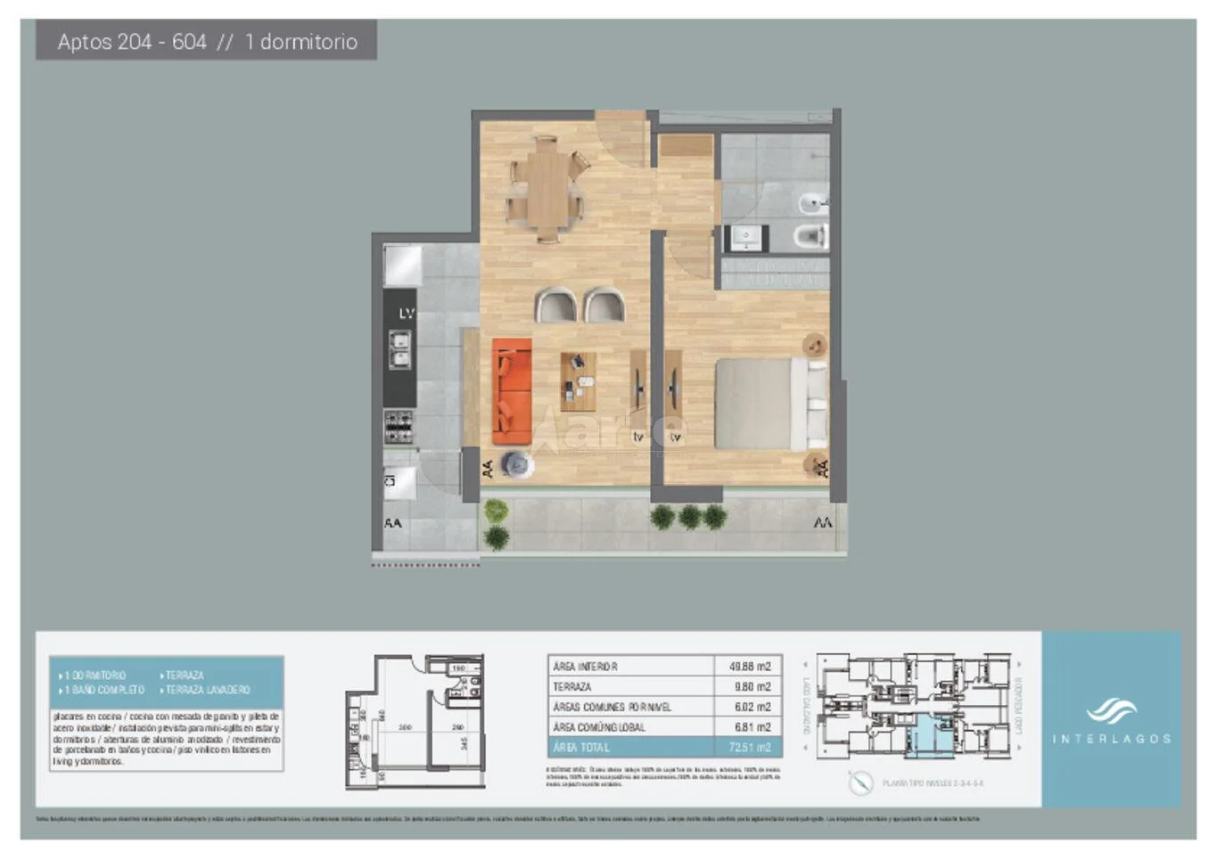 Divino apartamento de buen metraje en Interlagos, gran living comedor con cocina definida semi integrada con barra y buena terraza lavadero con caldereta ya instalada que suministra el agua caliente de todo el apartamento y el gas de la cocina. Salida a terraza desde ambos ambientes con muy buena vista lateral a los Lagos.