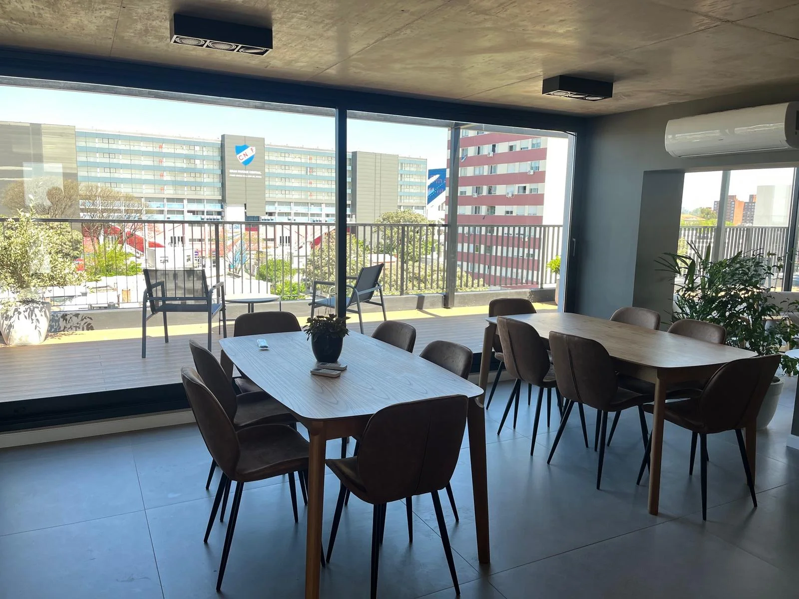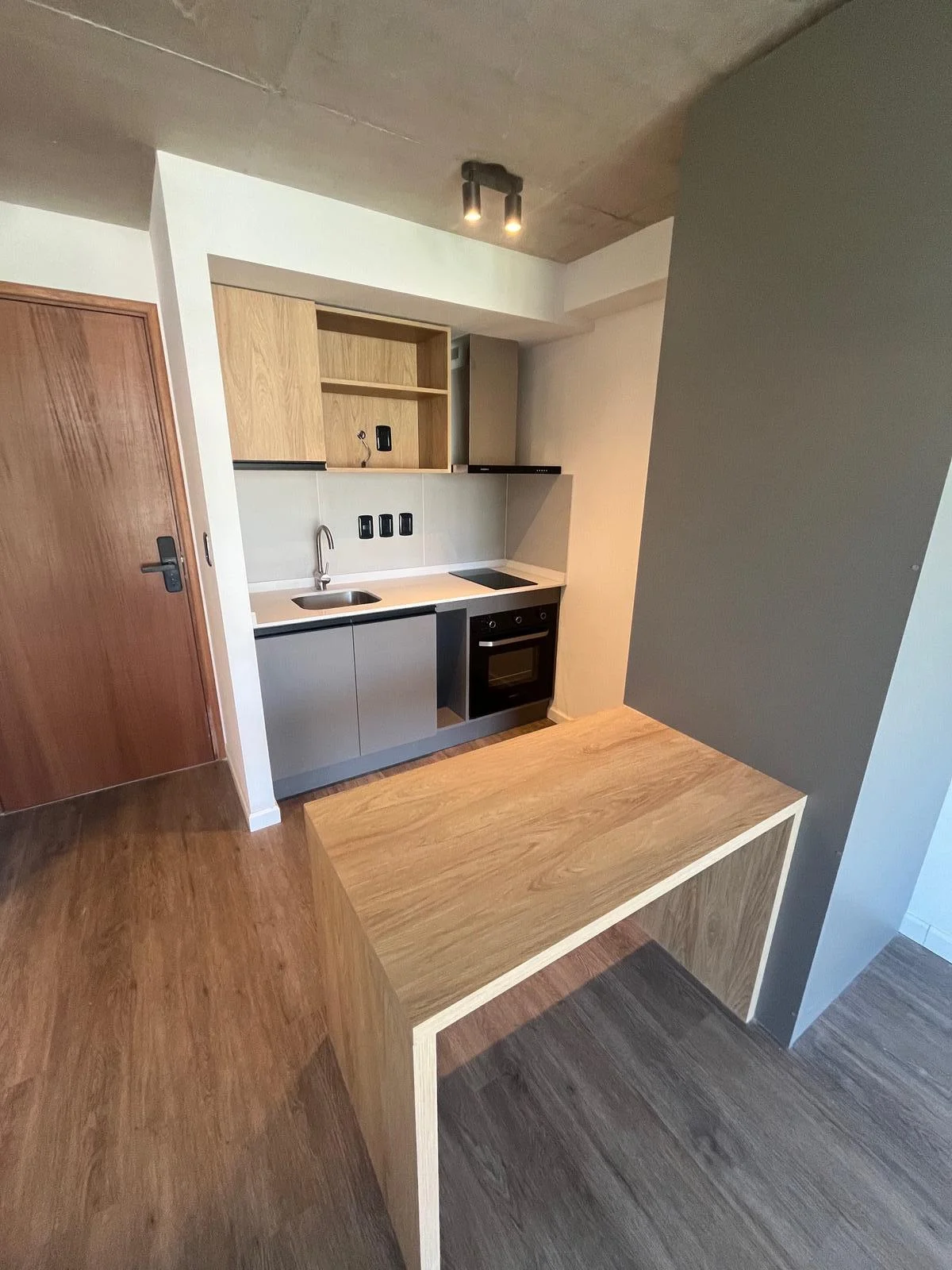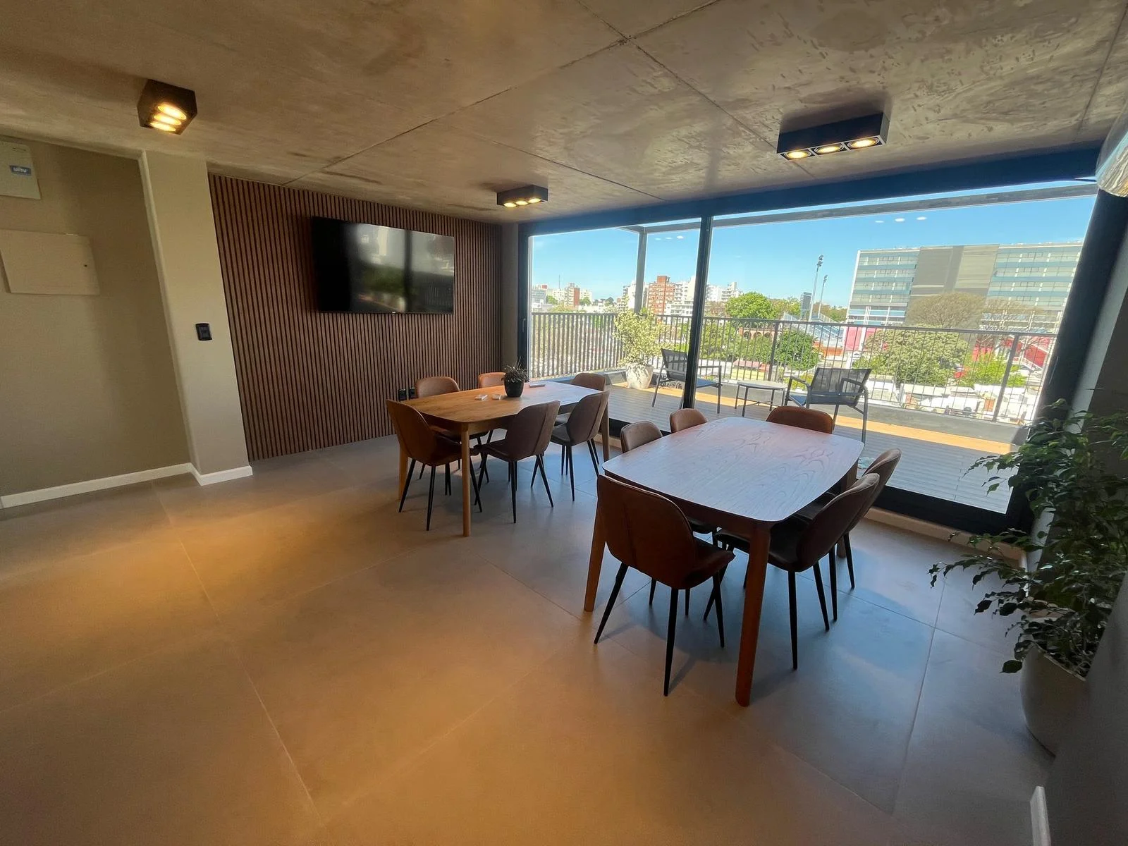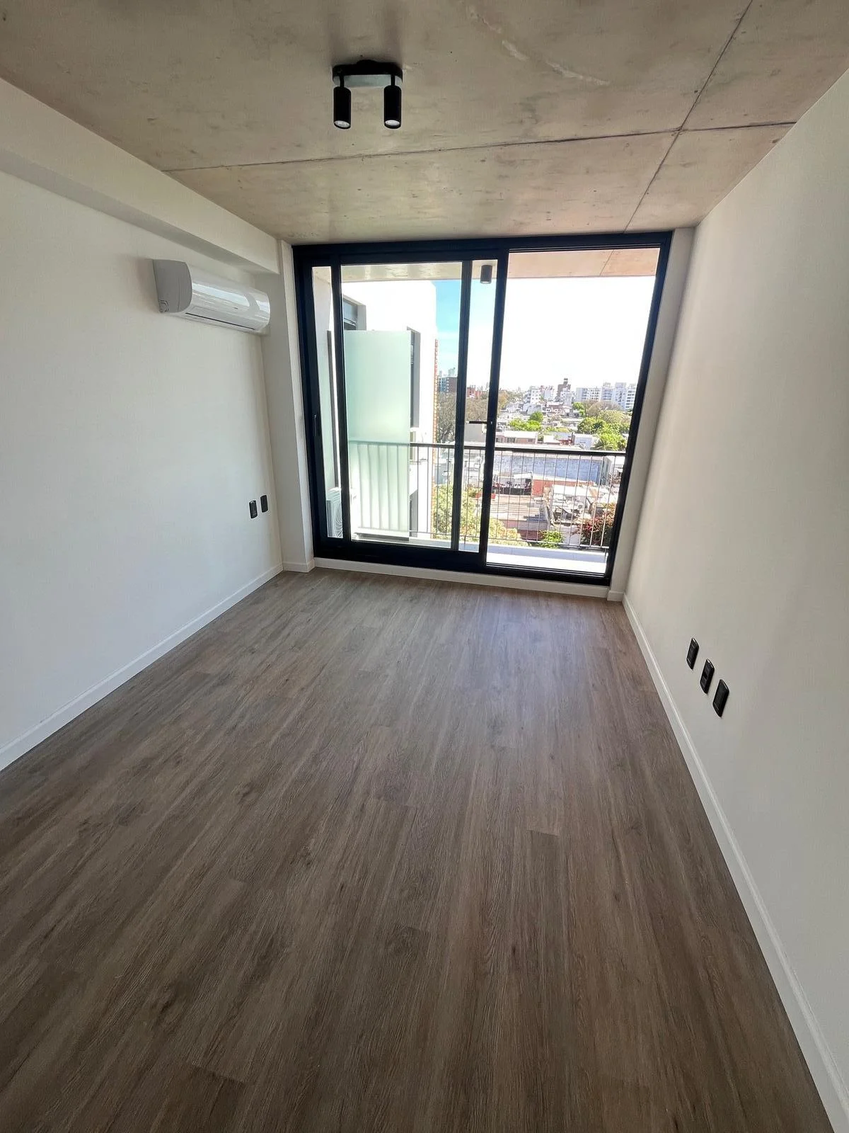 Apartamento a estrenar con cochera. Estar con salida a terraza, moderna cocina integrada equipada con horno, anafe y campana. Calefón y aire acondicionado en dormitorio y en living incluido. Incluye box de uso exclusivo en el mismo piso. Sum con parrillero en el ultimo piso. Garantia Fideciu - Sura