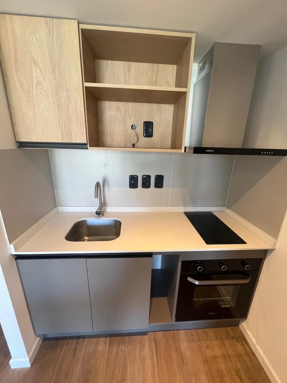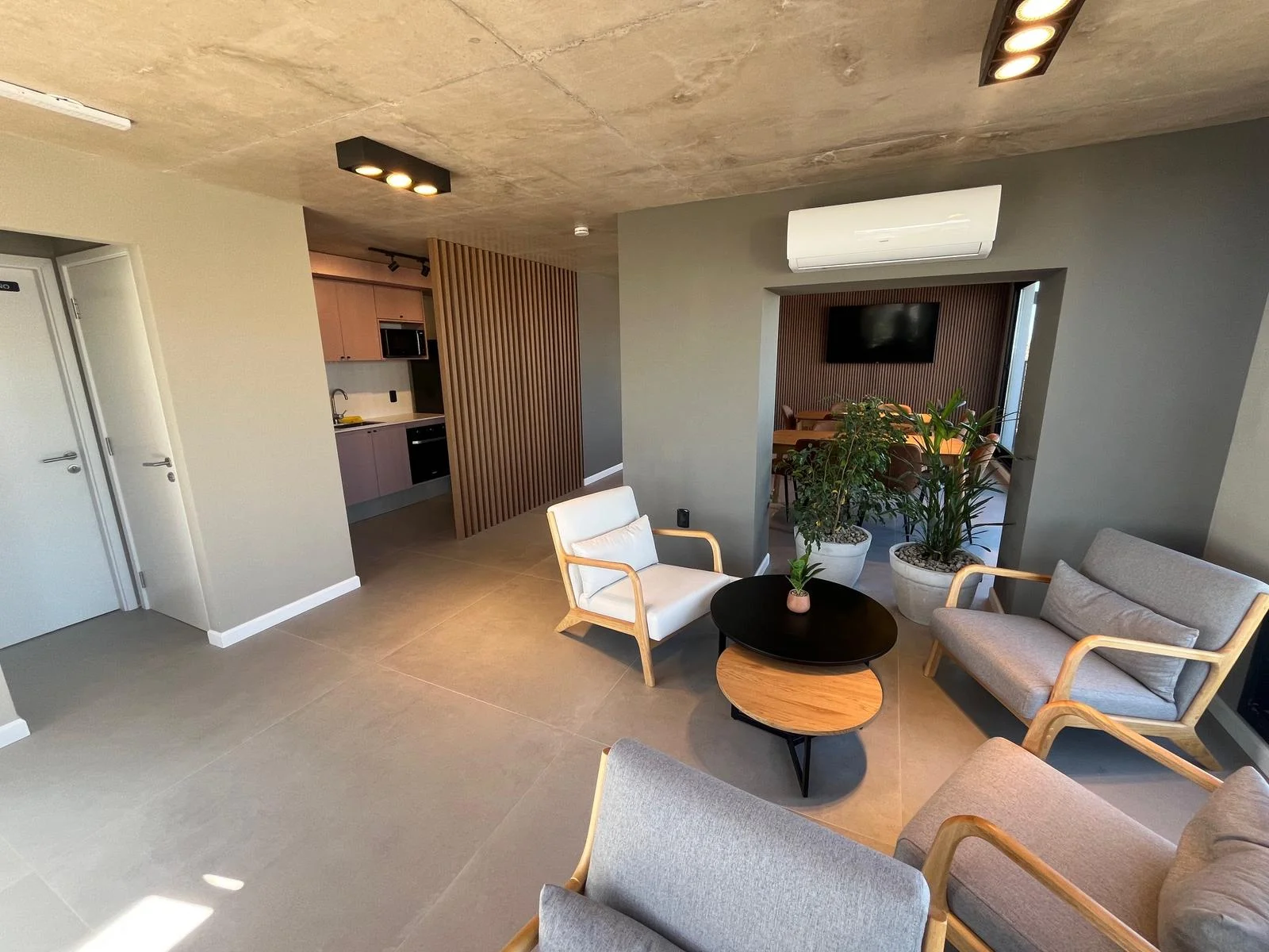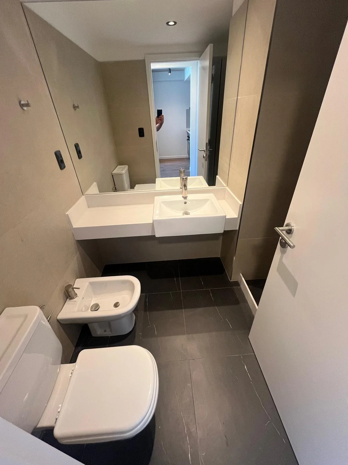 Apartamento a estrenar con cochera. Estar con salida a terraza, moderna cocina integrada equipada con horno, anafe y campana. Calefón y aire acondicionado en dormitorio y en living incluido. Incluye box de uso exclusivo en el mismo piso. Sum con parrillero en el ultimo piso. Garantia Fideciu - Sura