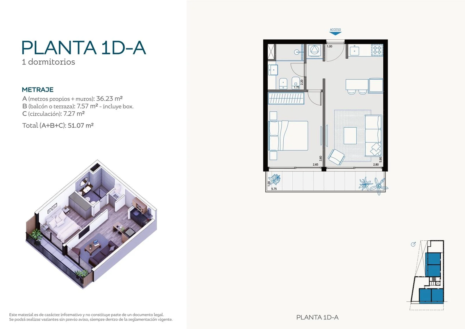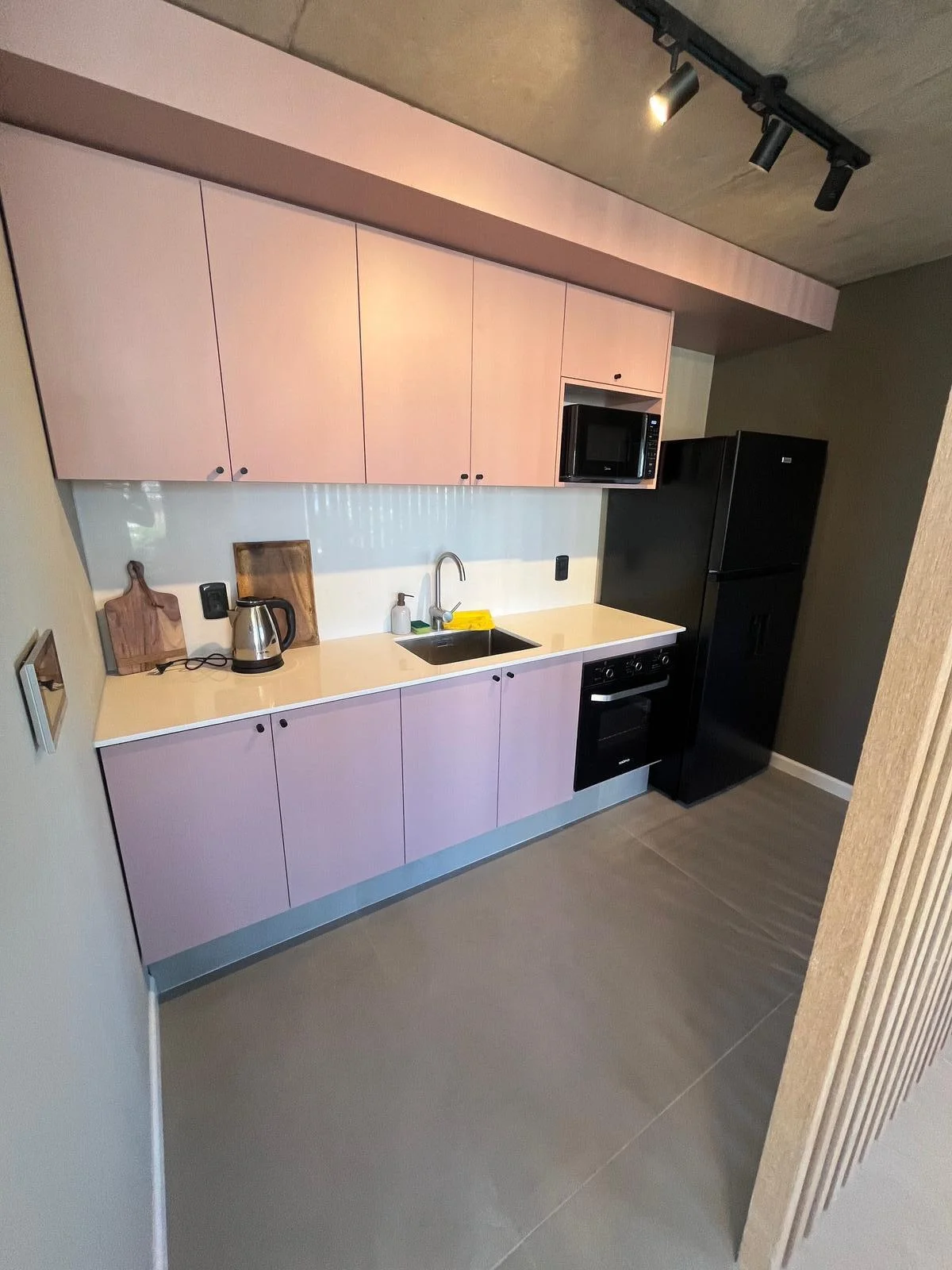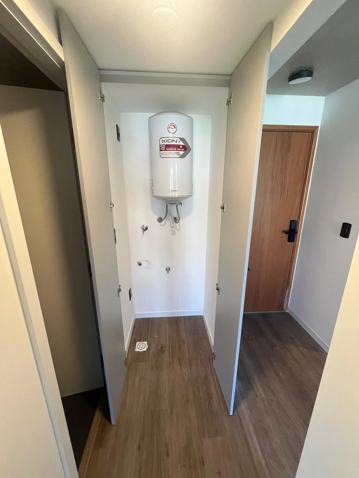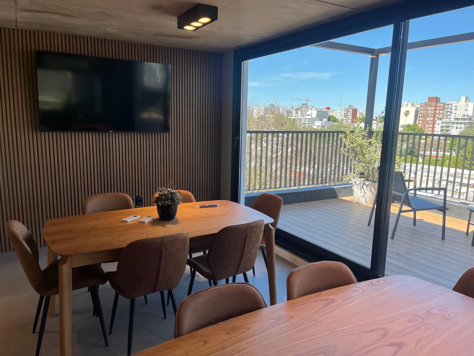 Apartamento a estrenar con cochera. Estar con salida a terraza, moderna cocina integrada equipada con horno, anafe y campana. Calefón y aire acondicionado en dormitorio y en living incluido. Incluye box de uso exclusivo en el mismo piso. Sum con parrillero en el ultimo piso. Garantia Fideciu - Sura