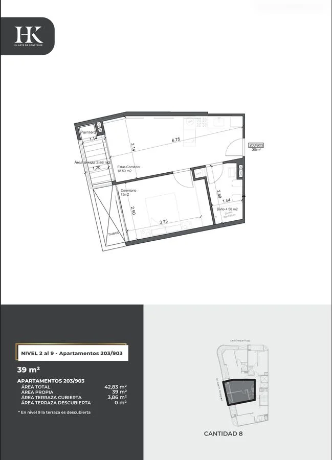 Edificio Henko SOHO en la mejor Zona de Cordón, 1 dormitorio con parrillero.