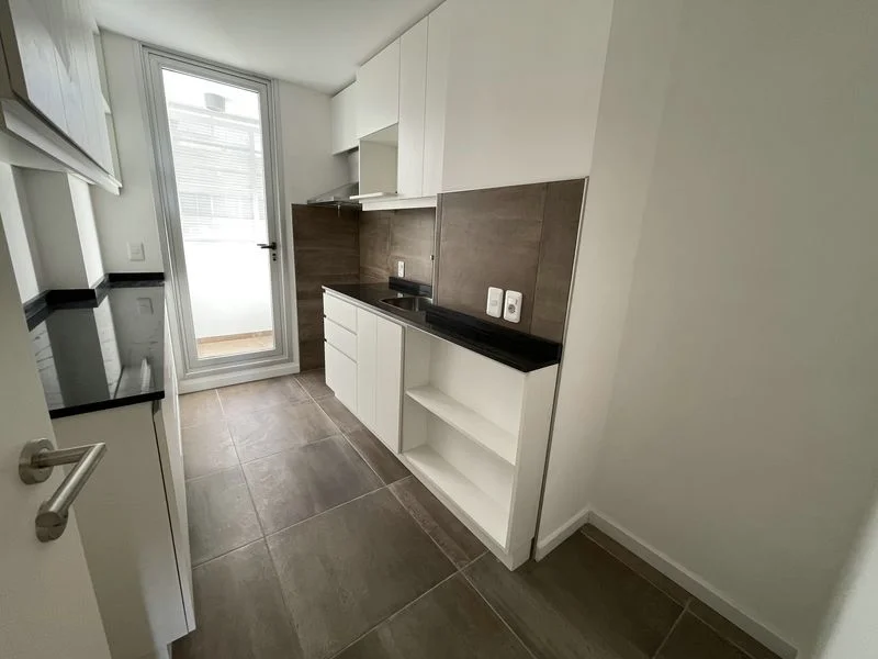 El inmueble cuenta con un living comedor amplio, cocina con doble mesada, campana de extracción, horno, muebles superiores e inferiores. Posee dos dormitorios con placares, aire acondicionado y grandes ventanales. Dispone de dos baños completos, uno de ellos con mampara de vidrio.