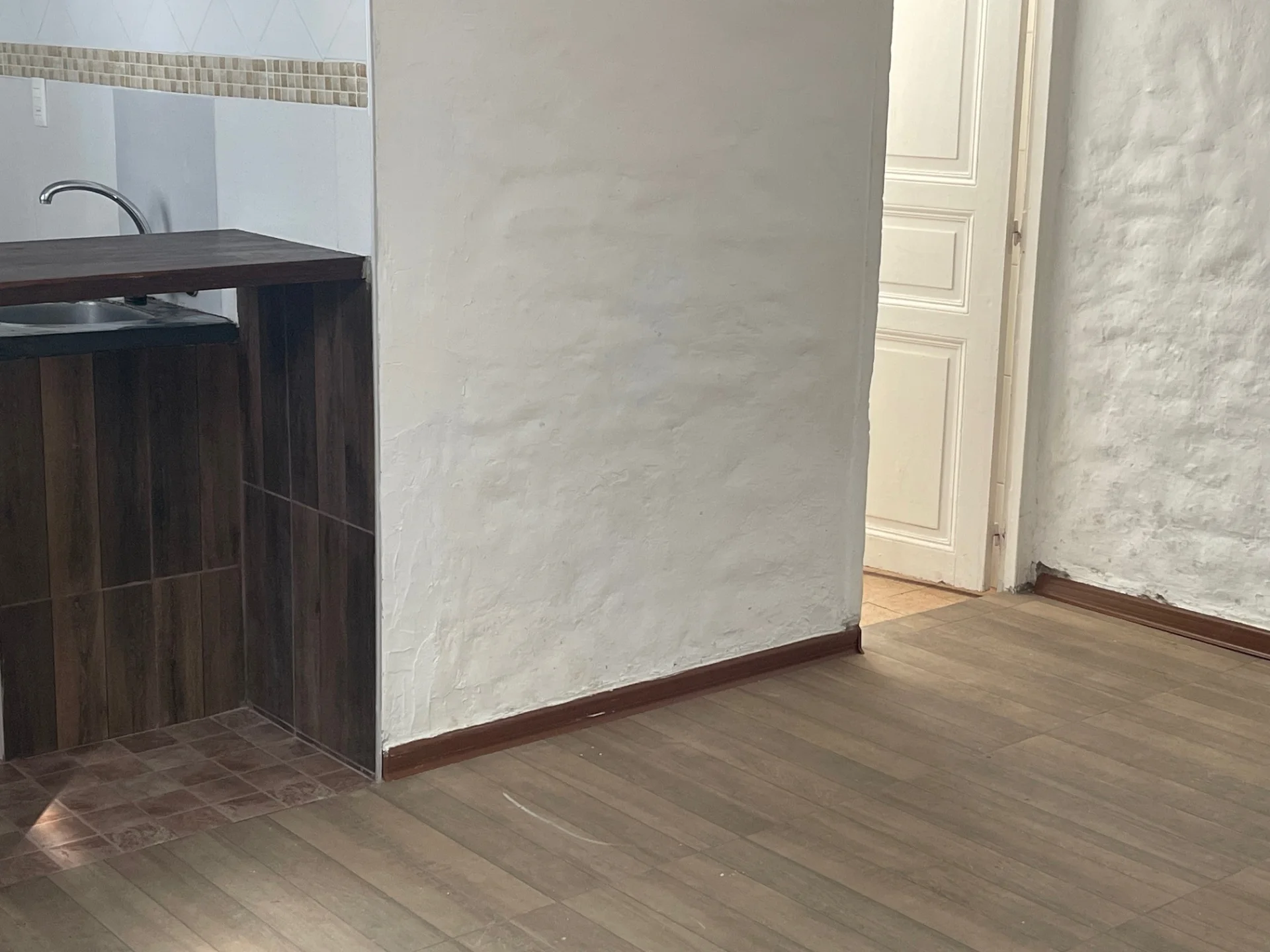 Es un apartamento en edificio de años, tipo casita, a nivel de planta baja, contra frente, se accede por un corredor abierto y la unidad da al patio común.
