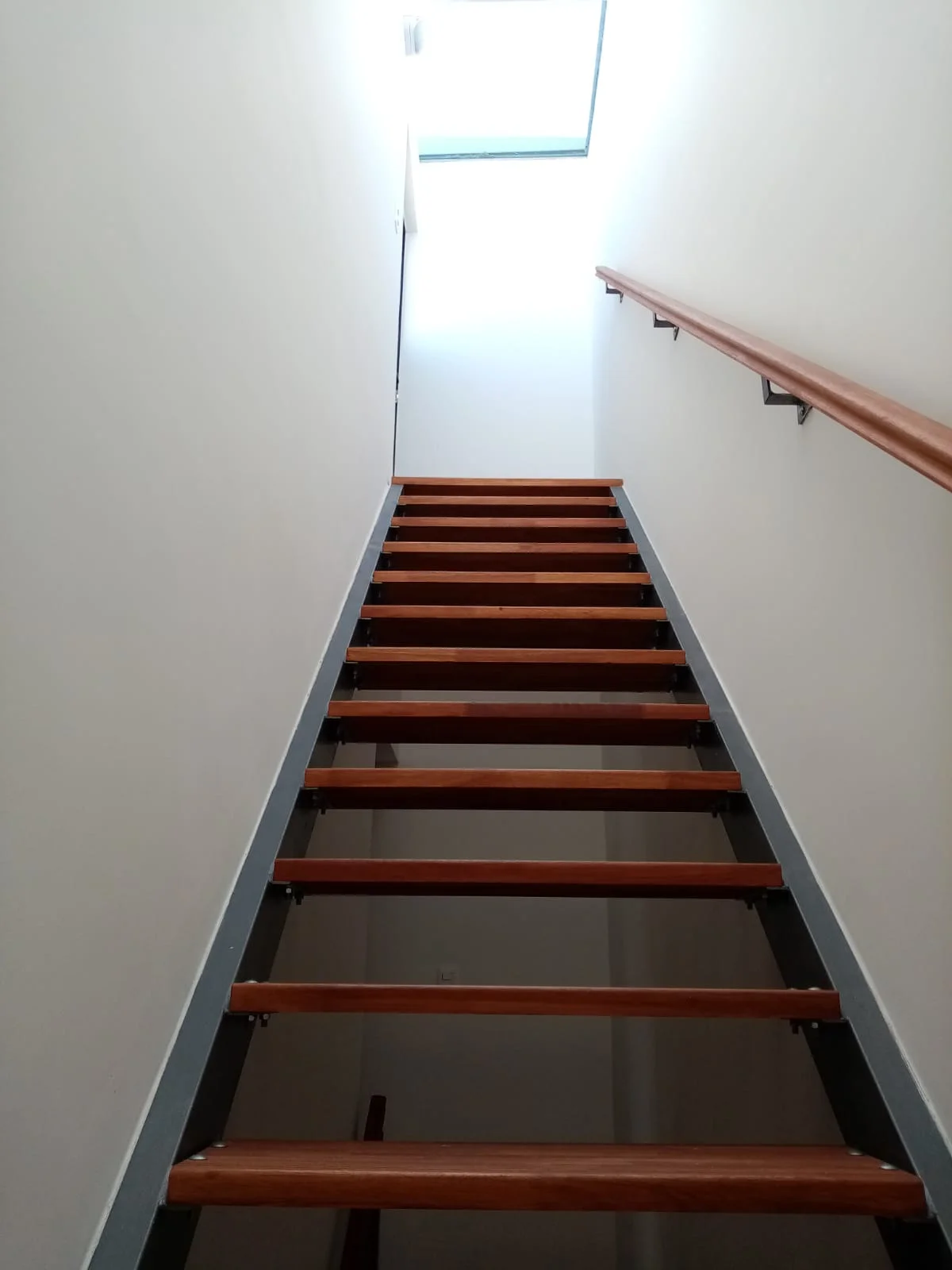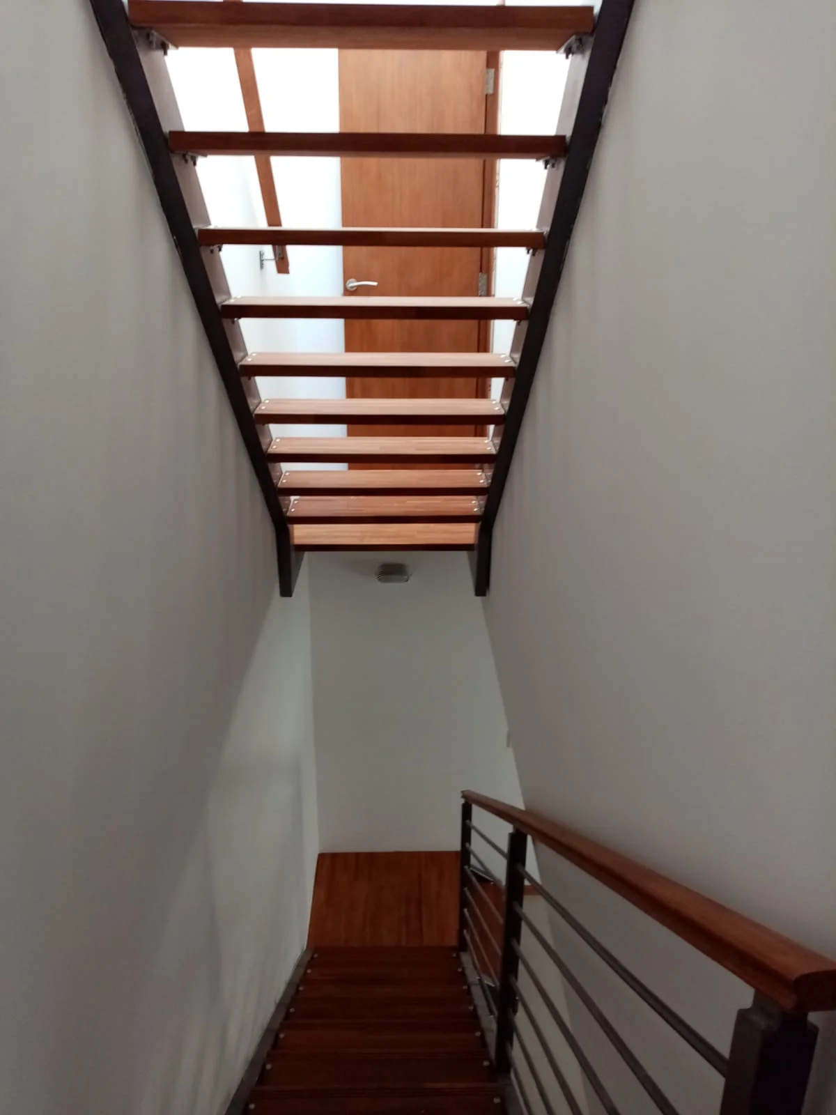 En planta baja se encuentra el living comedor, una cocina semi definida y un baño. En el primer piso, están los dos dormitorios, ambos con ventanas que permiten la entrada de luz natural. El apartamento cuenta además con una azotea de uso exclusivo.