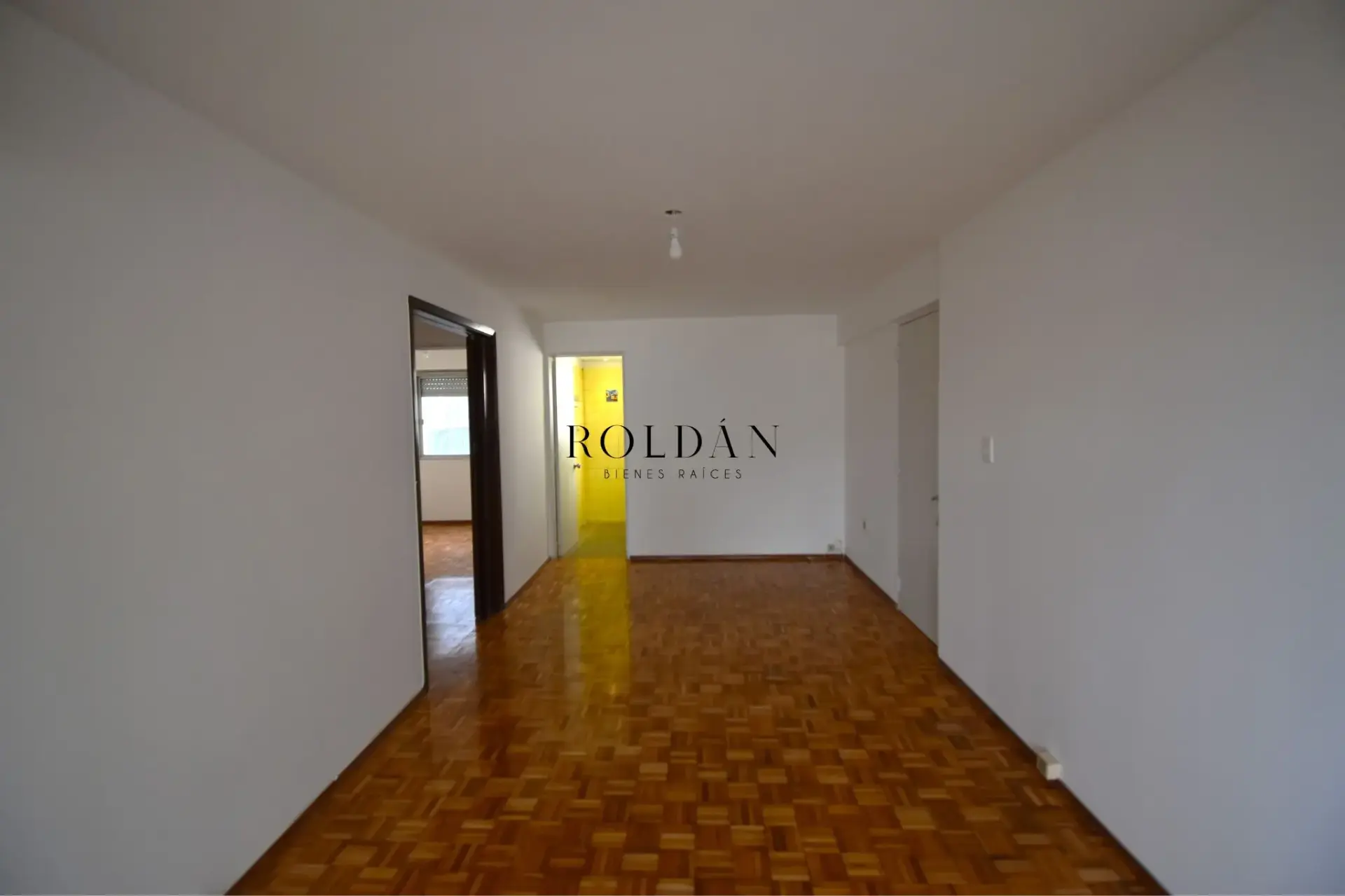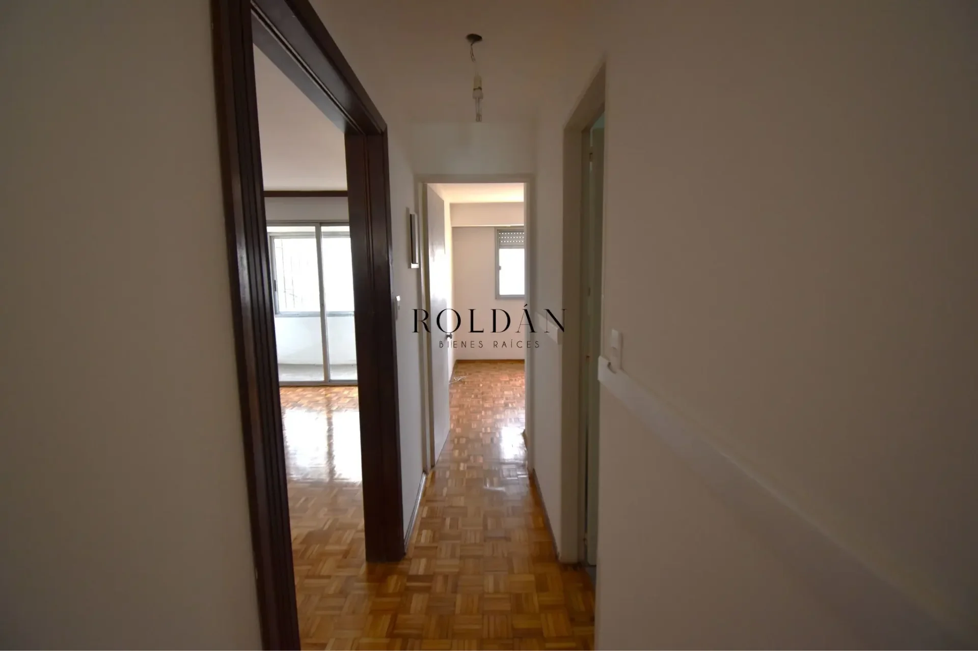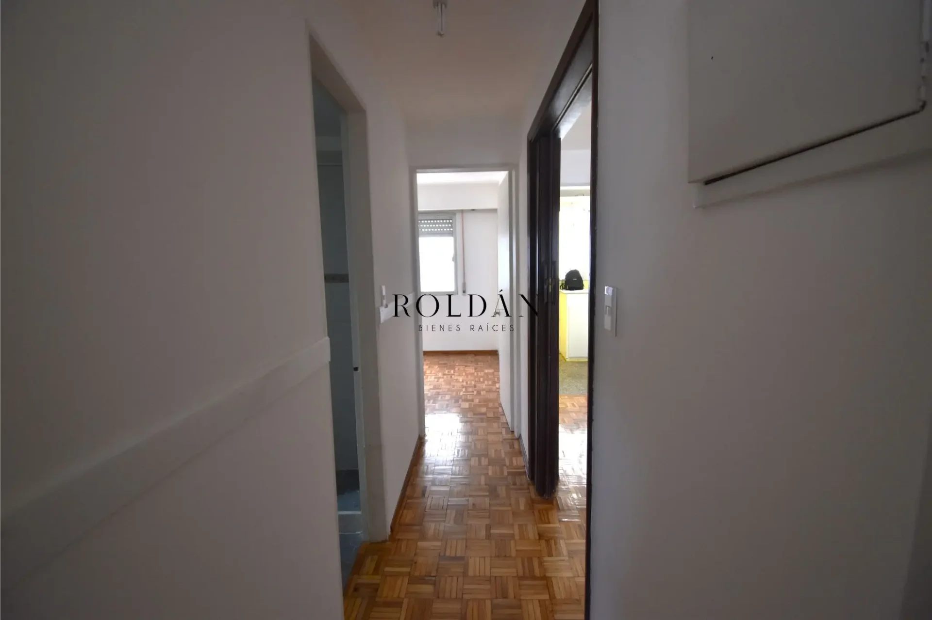 Pasillo de distribución que permite acceder a ambos dormitorios, principal al frente con piso de parquet, mueble empotrado piso techo y ventana a la calle con persiana. Segundo dormitorio al contrafrente con ventana con rejas y persiana, piso de parquet y mueble empotrado. Baño completo muy cómodo.