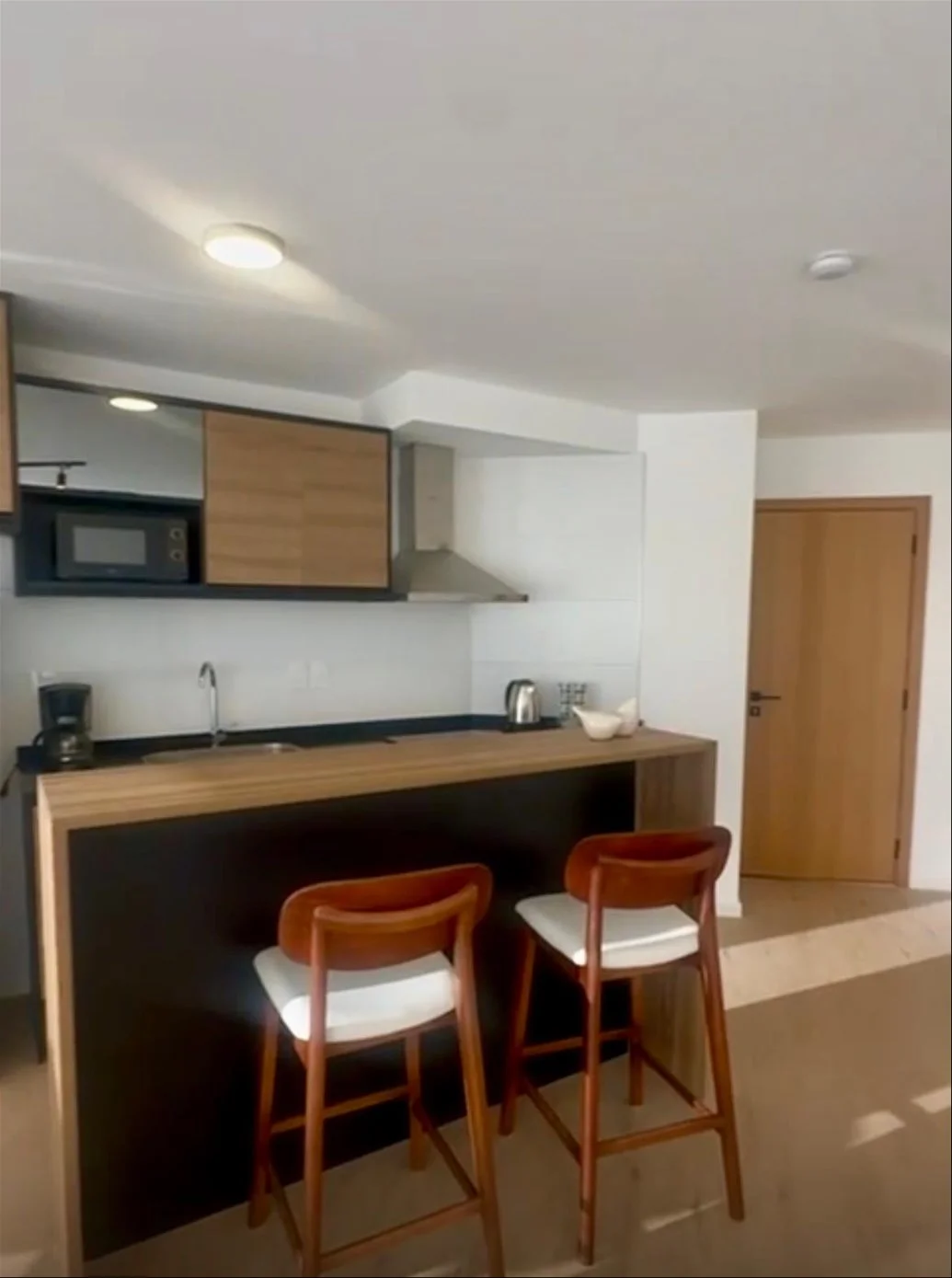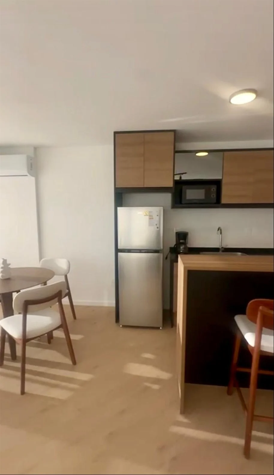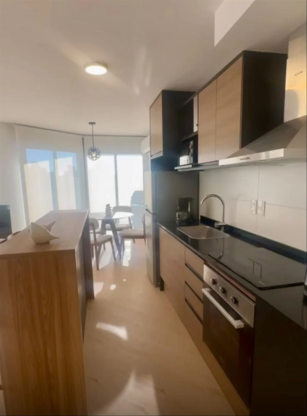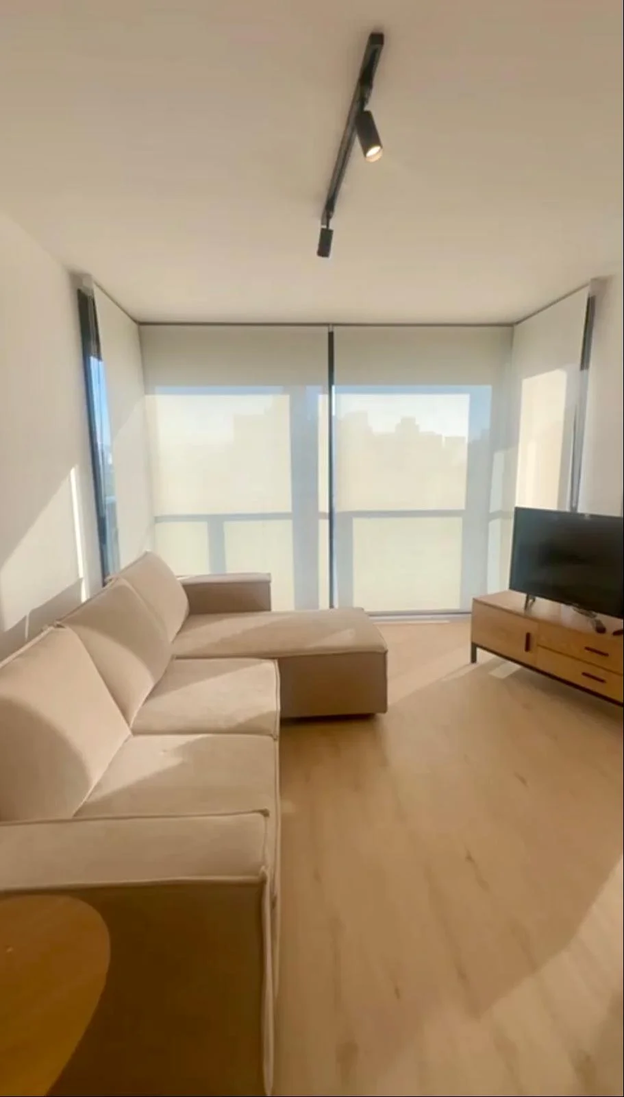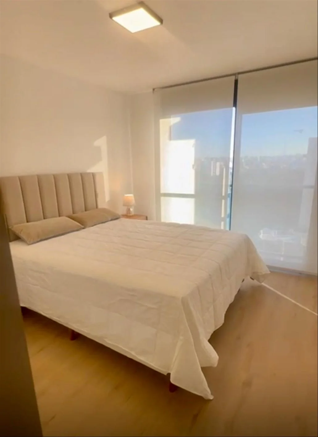 Living comedor con cocina integrada equipada, dormitorio muy luminoso con placar.