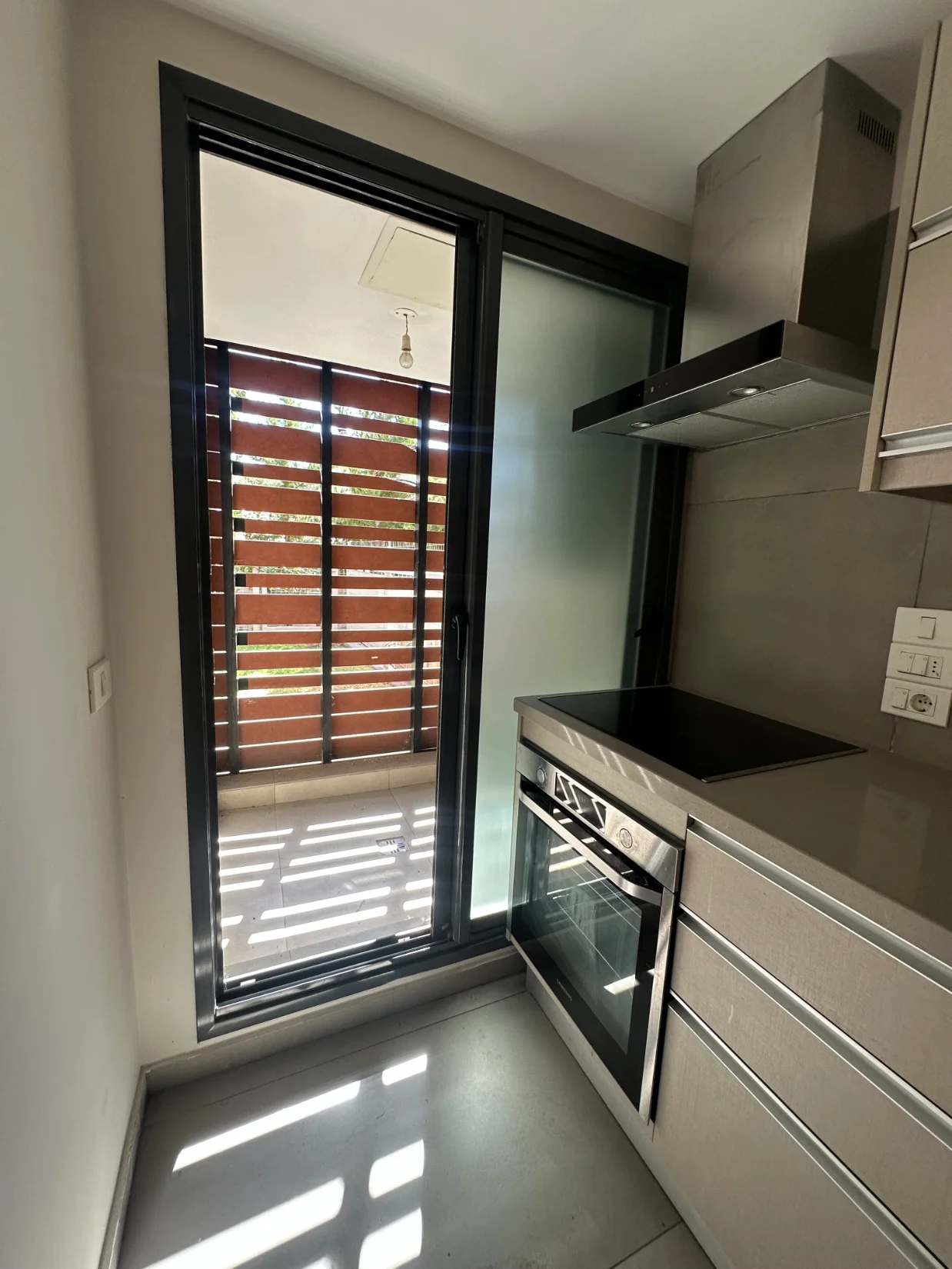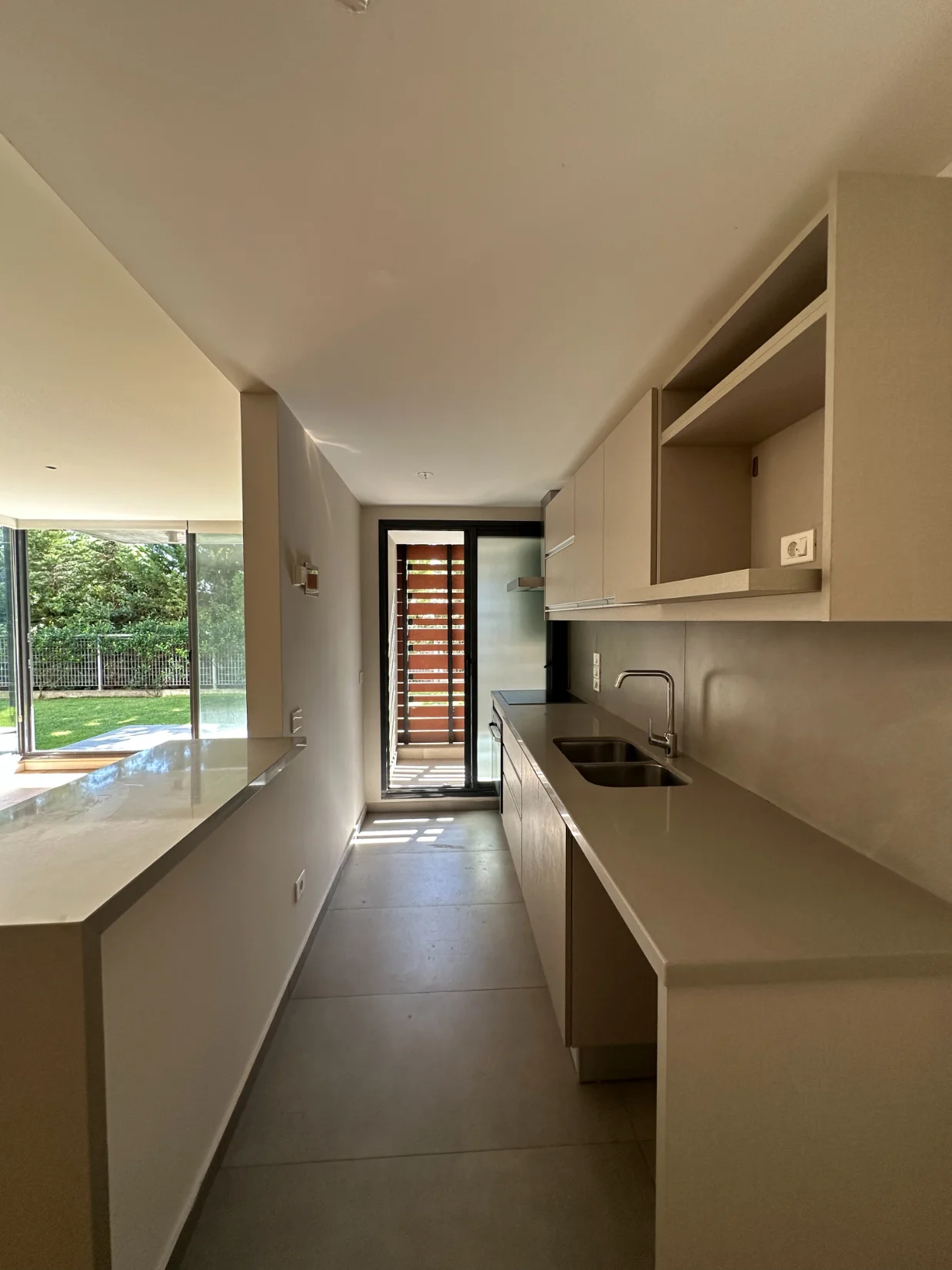 - Terraza de servicio cerrada con techo y celosías.