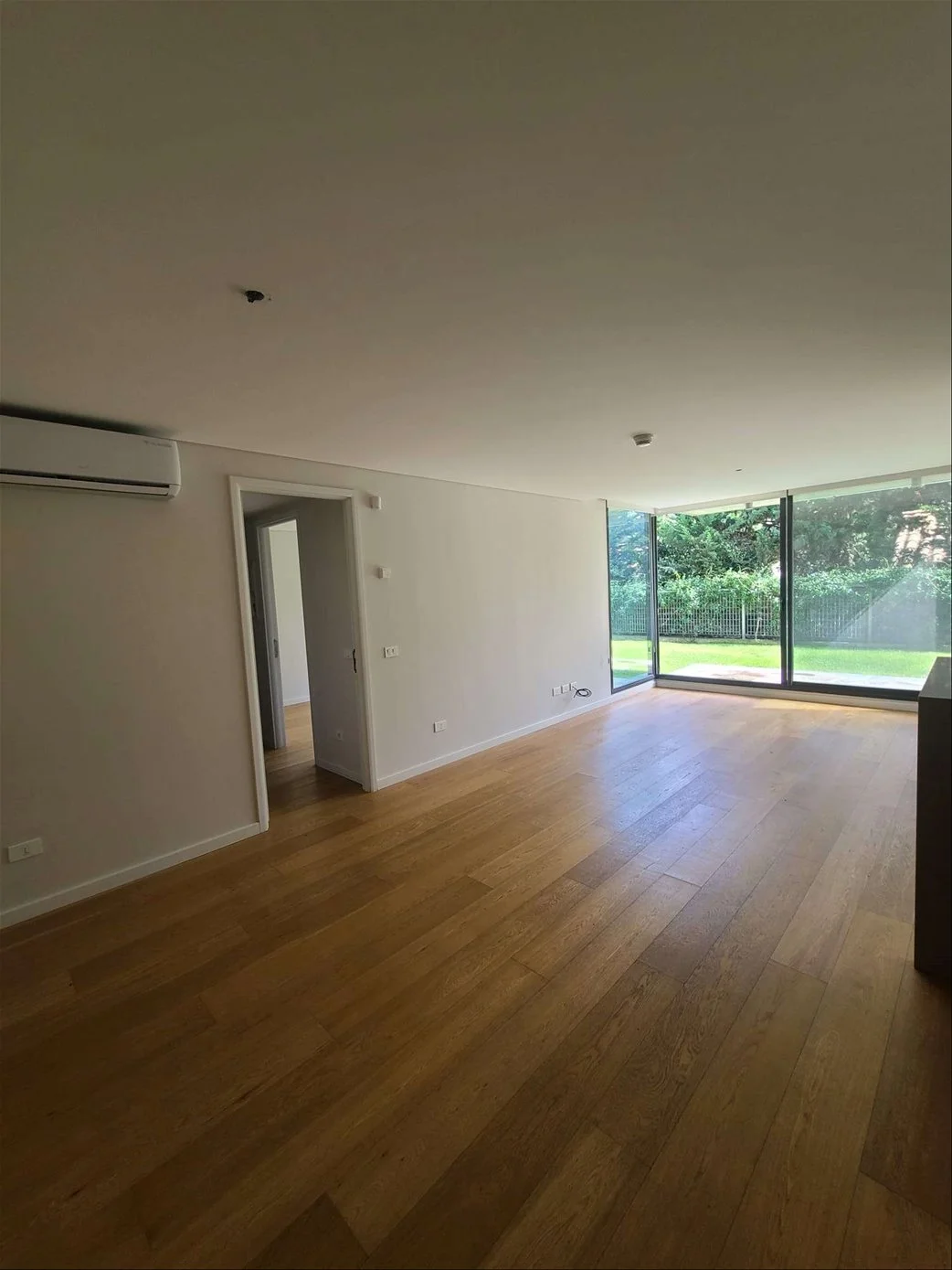 Ingresamos al apartamento y nos encontramos con un amplio living comedor con grandes ventanales con salida al hermoso jardín. Cocina de muy buen tamaña semi integrada con una barra desayunadora y muy buena profusión de placares. Cuenta con anafe y horno empotrados y campana extractoa. Salida a terraza lavadero con conexión para lavarropas y calefón de 80 lts. Pasamos por un pasillo donde encontramos un baño completo de muy buen tamaño y un dormitorio con excelentes placares y con ventanales con salida al jardín. Luego tenemos el dormitorio principal con vestidor y gran baño en suite, el dormitorio también tiene un gran ventanal con salida al jardín.