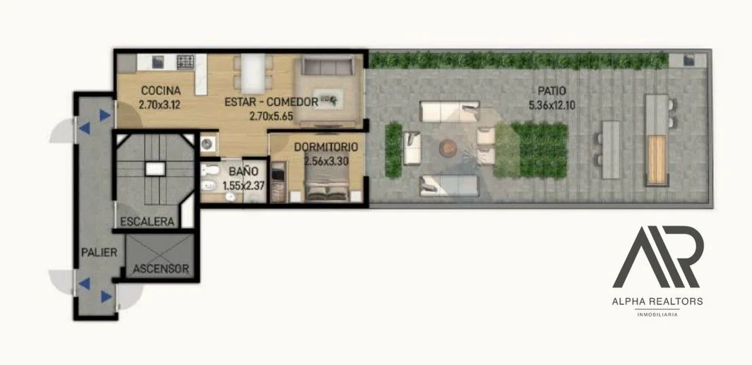 Al ingresar nos encontraremos con un estar comedor con cocina integrada, luego encontraremos un dormitorio y baño completo.