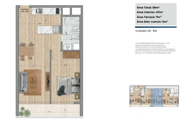 Amplio apartamento de 1 dormitorio con living comedor y dormitorio ubicada al frente, con acceso al balcón.. Esto garantiza luz natural y salida directa al exterior incluso si se genera una separación interna.