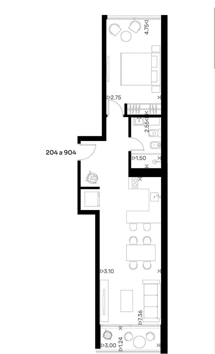 Los apartamentos de 1 y 2 dormitorios presentan una distribución que optimiza cada ambiente, conectando el living, comedor y cocina en un espacio funcional y acogedor.