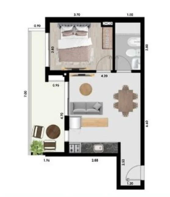 El apartamento cuenta con un amplio living comedor integrado a una cocina de primera categoría, proporcionando un ambiente acogedor y luminoso. Desde aquí, se accede a un espacioso balcón, perfecto para disfrutar de la vista urbana. El dormitorio principal incluye un placard, optimizando el espacio de almacenamiento.