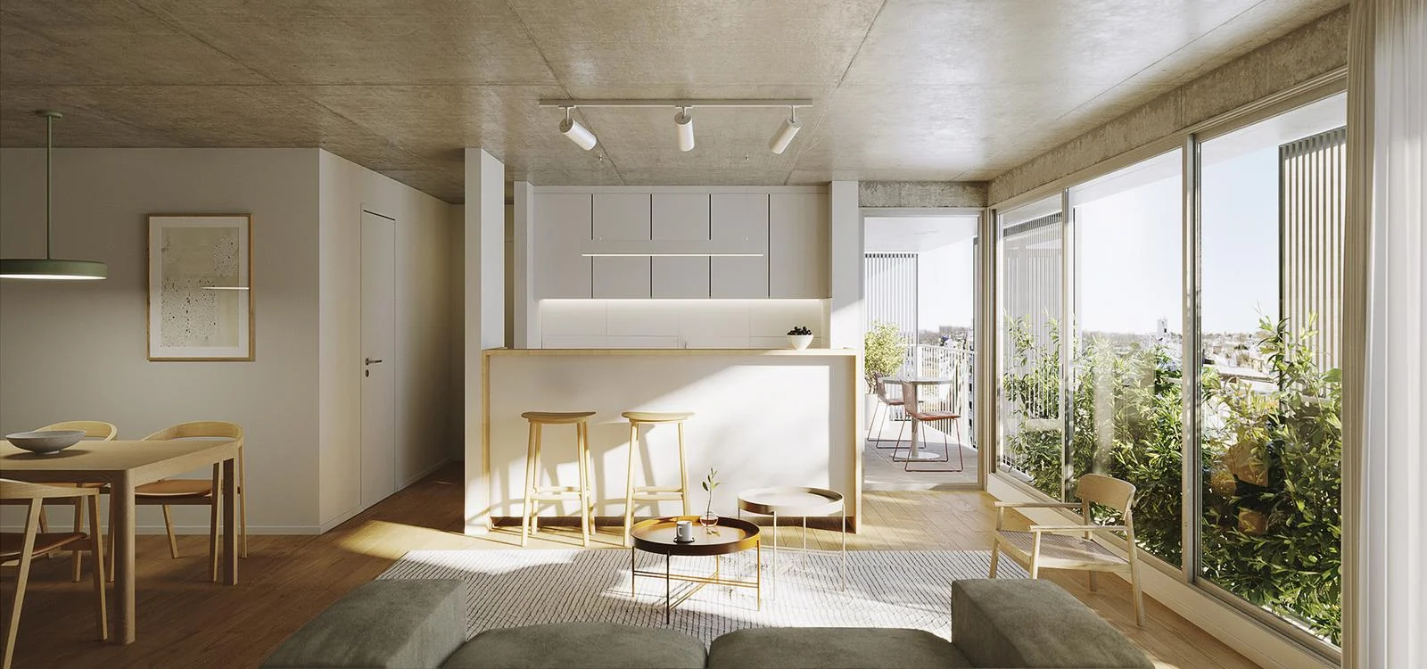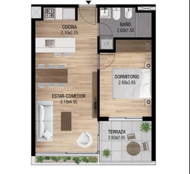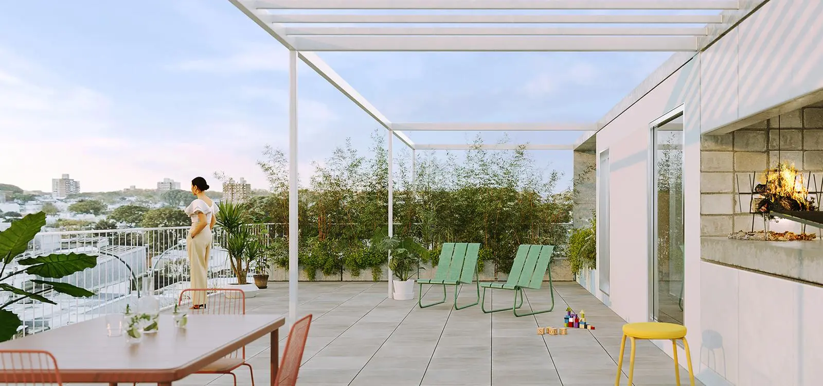 Uno de los principales diferenciales del proyecto es la amplitud de sus espacios, superior al estándar del mercado. Las terrazas, amplias y bien integradas, funcionan como una verdadera extensión del interior, potenciando la luz natural y aportando una sensación de mayor apertura y bienestar.